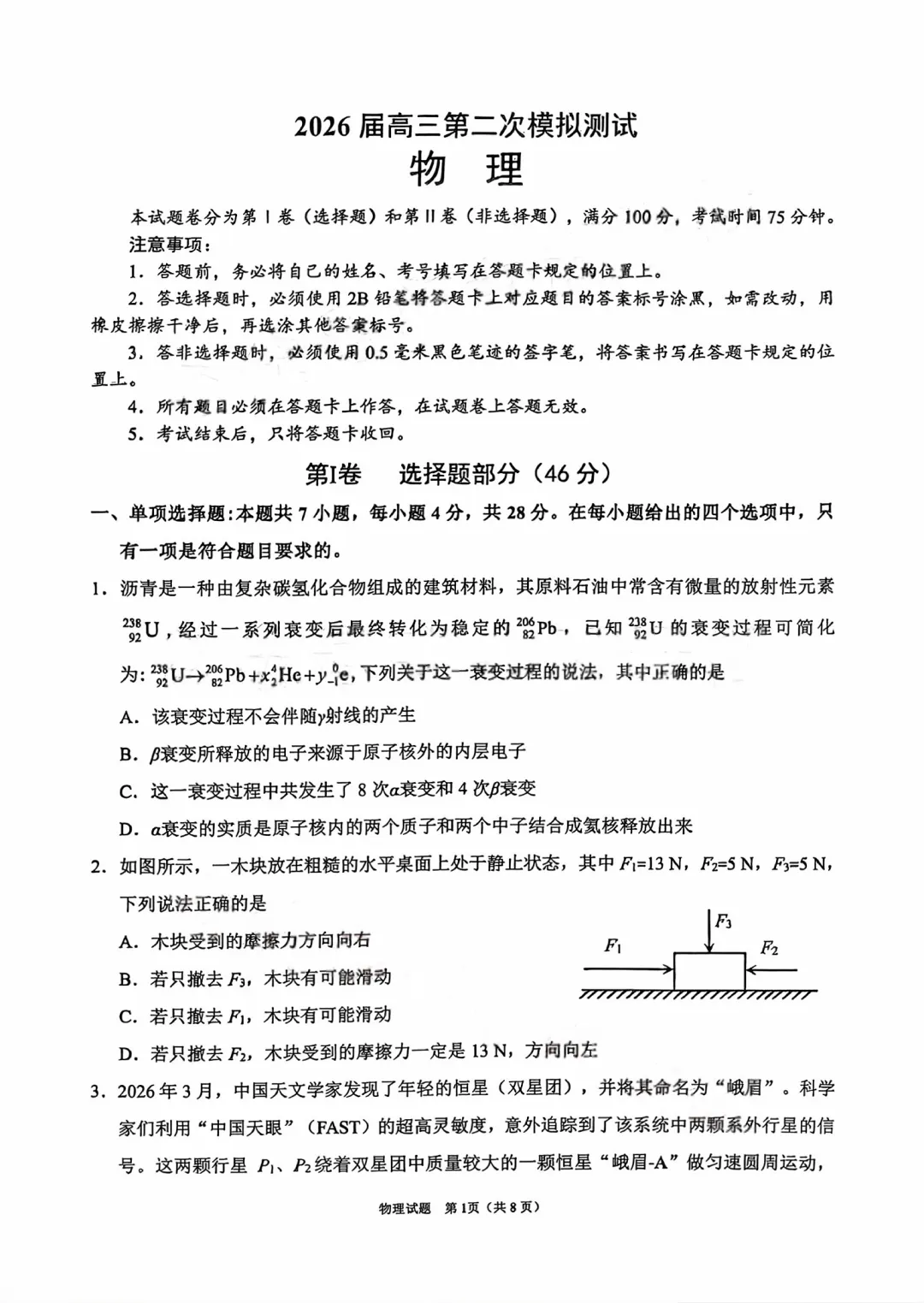 当前位置:首页>考研真题>四川眉山26届高三二诊试卷及答案