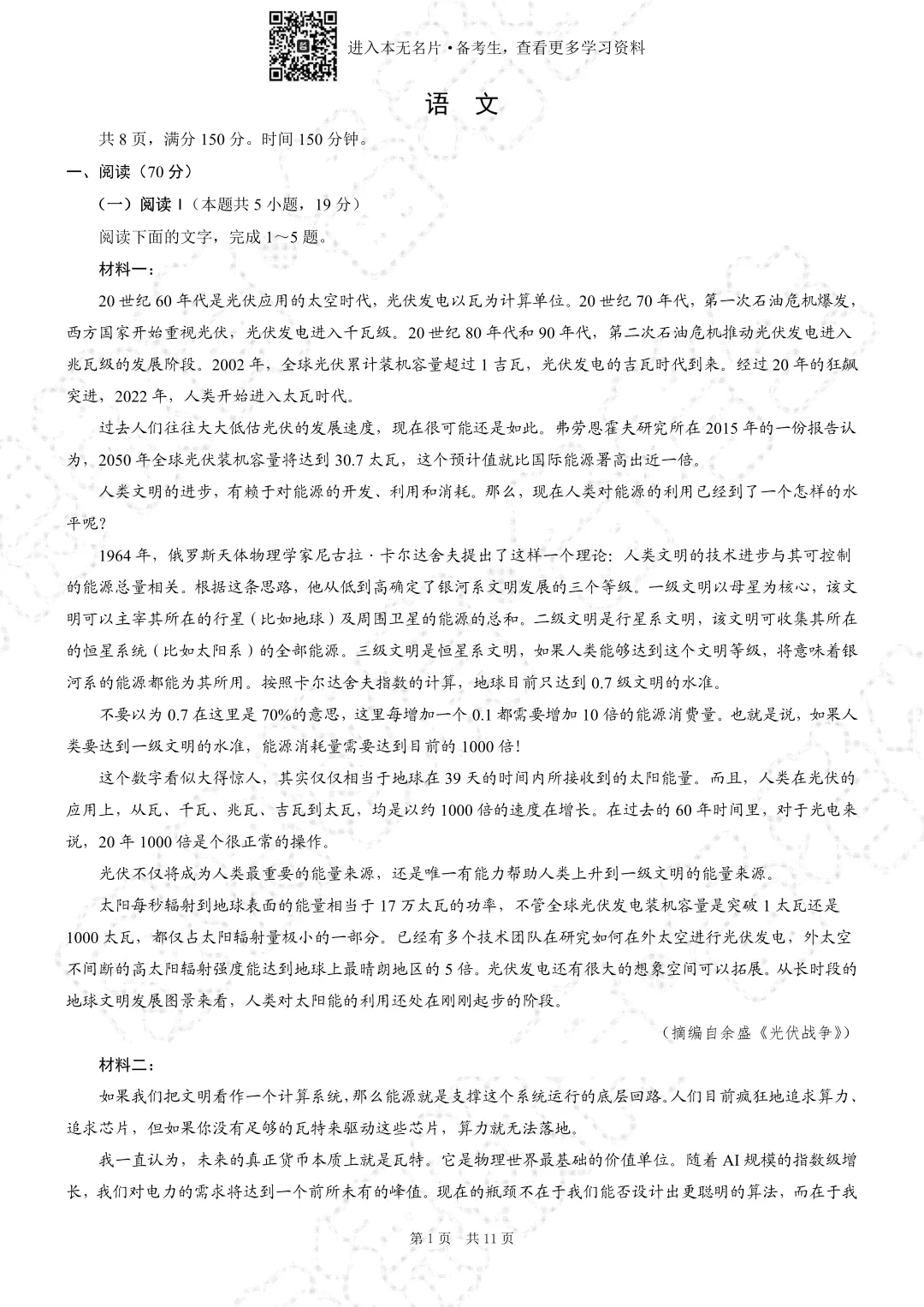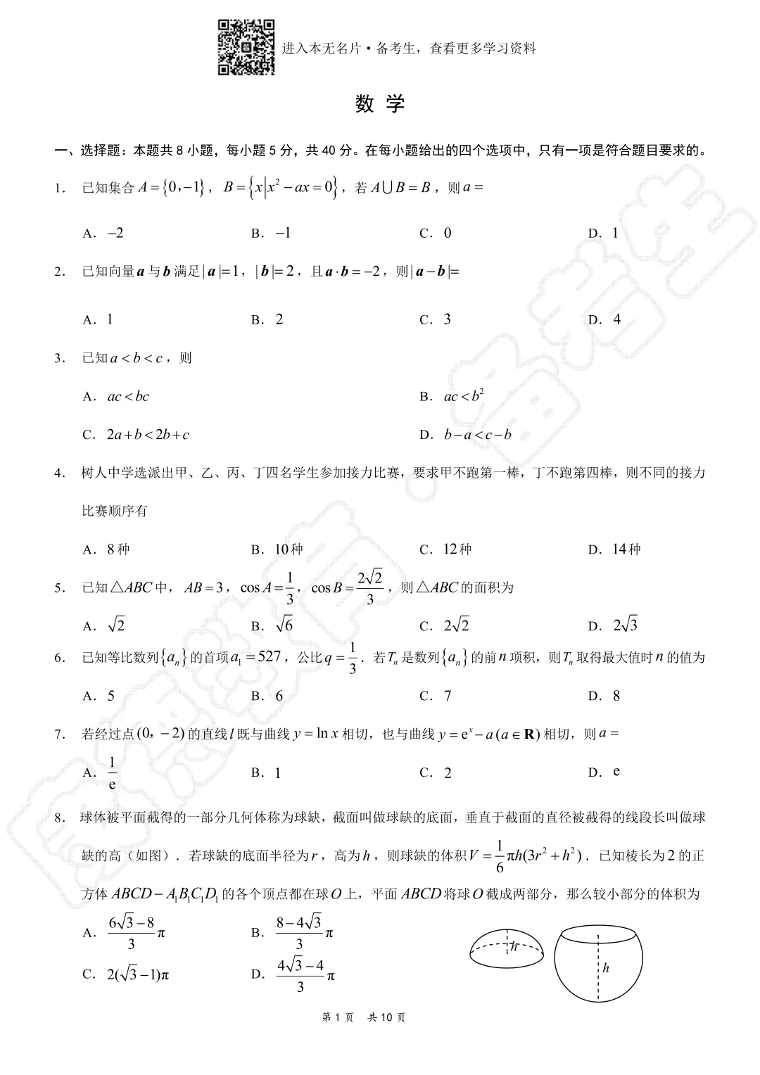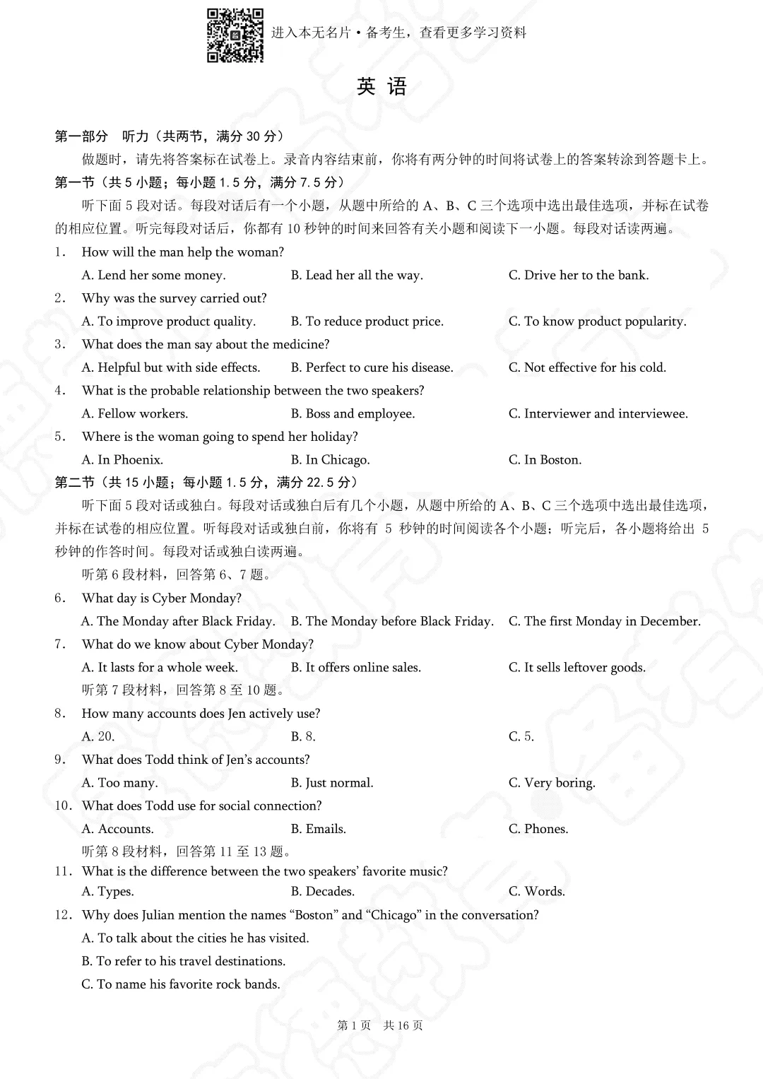 免费获取完整版试卷及解析,无水印电子档的方式在下面,