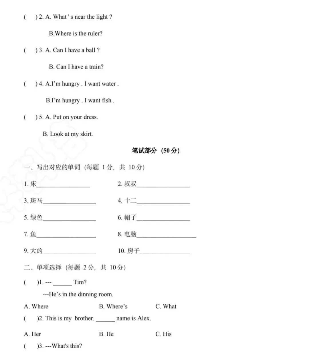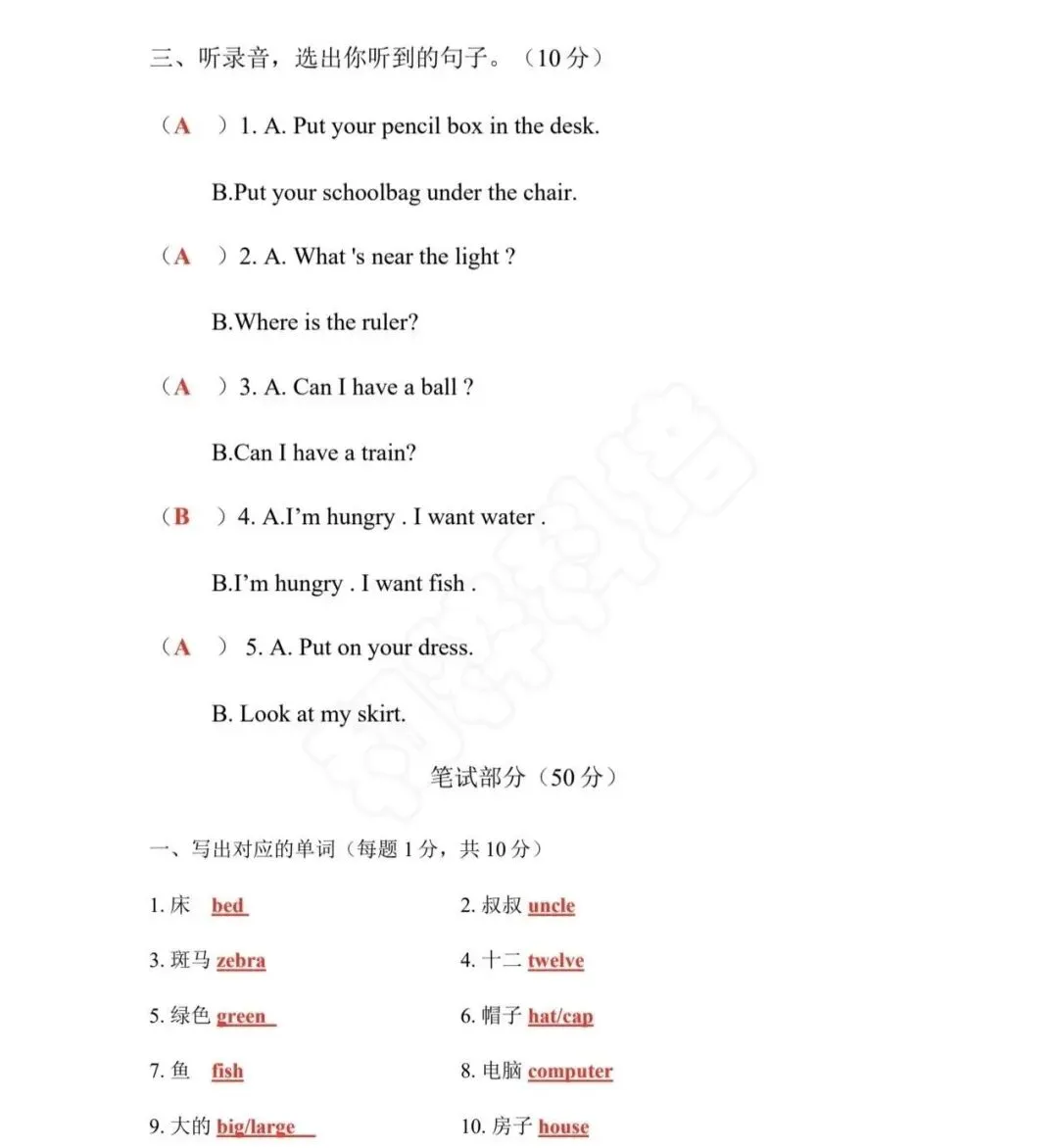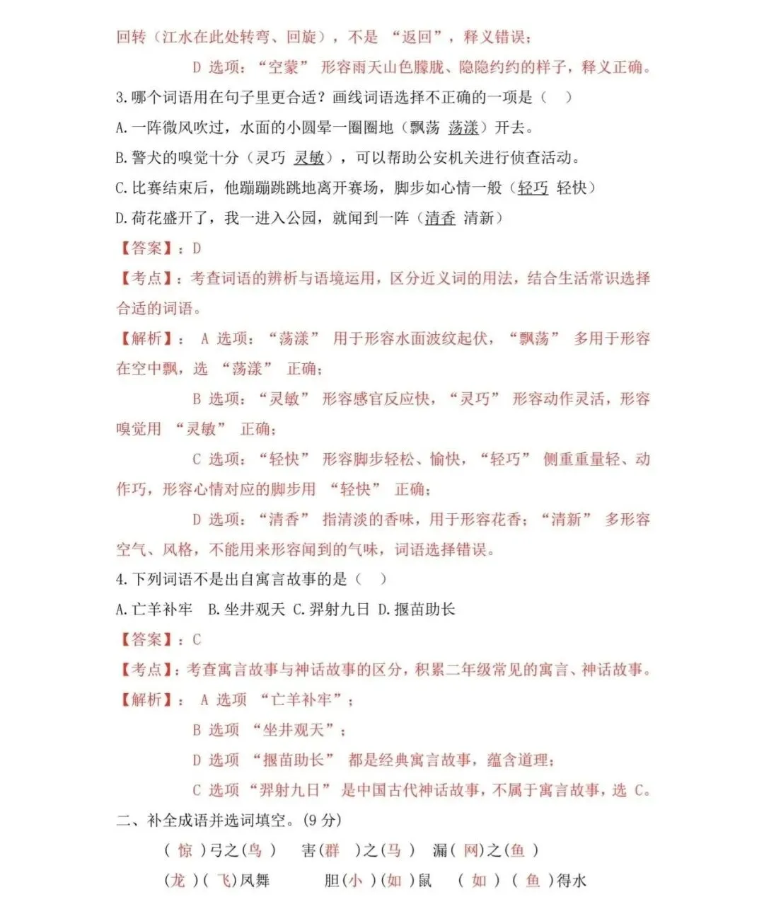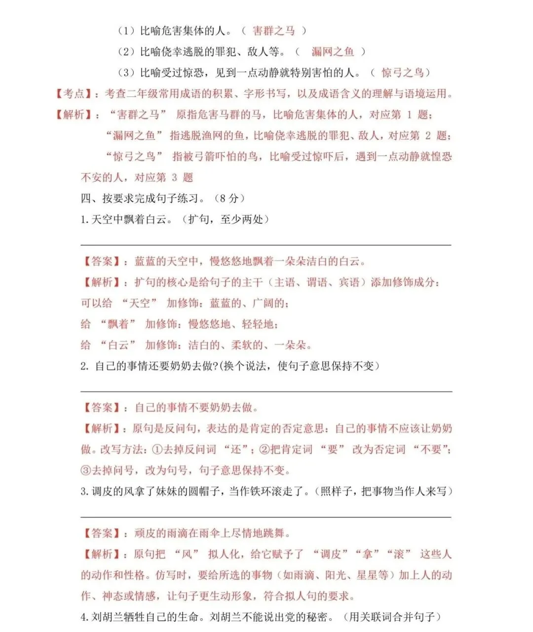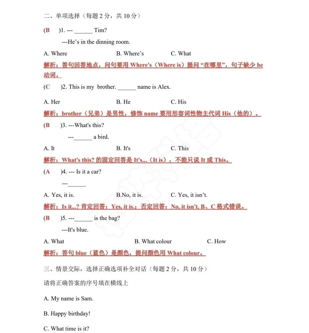 >二年级学业水平测试语数英试卷+解析+视频讲解