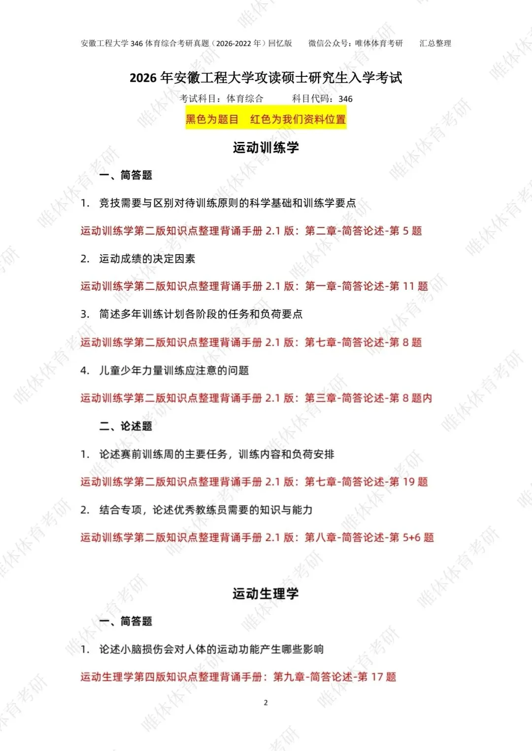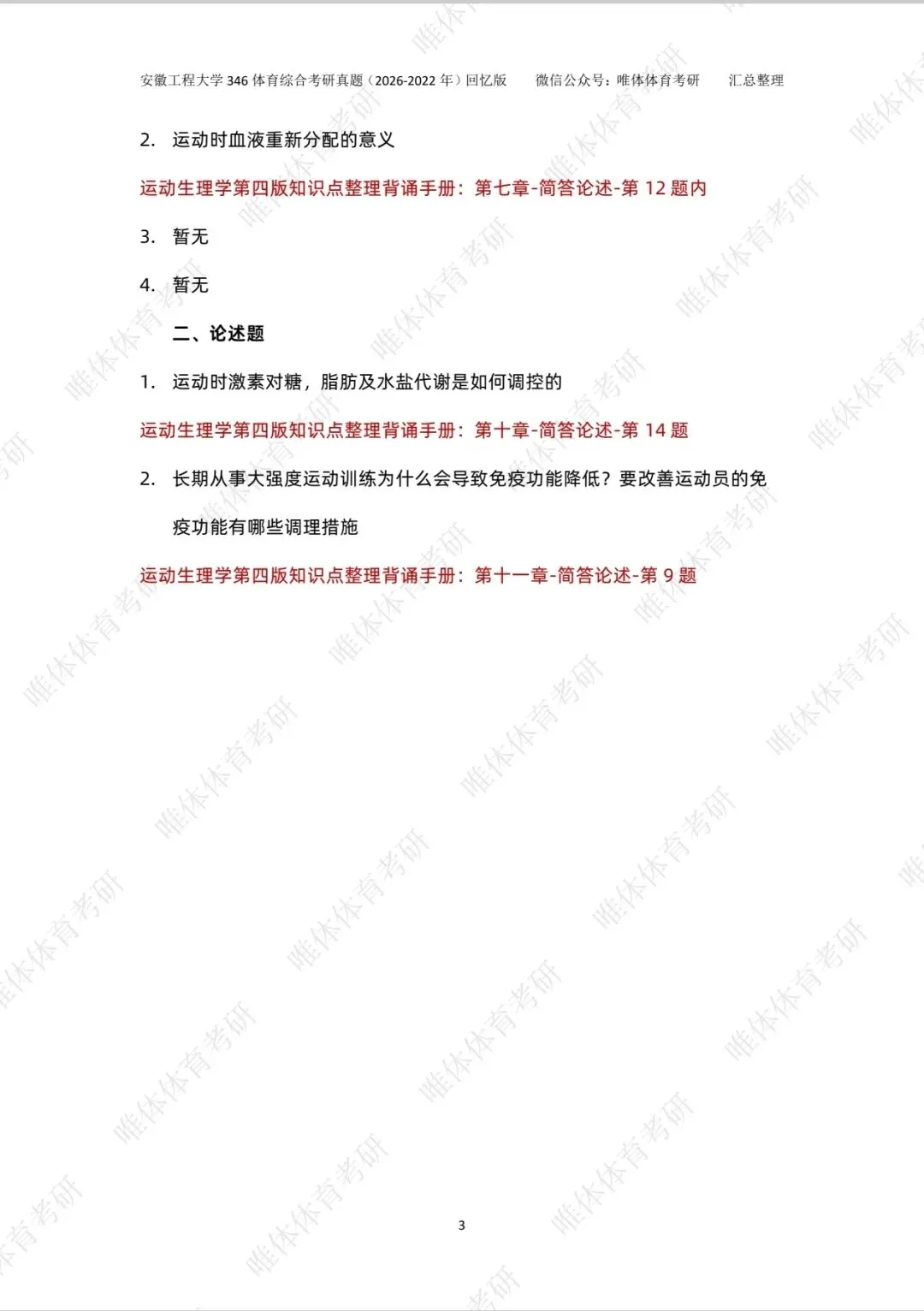 体育考研,安徽工程大学2026考研346体育综合考研真题!