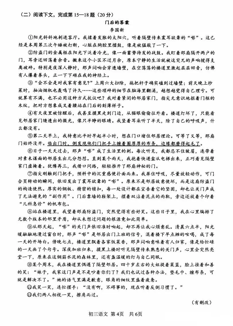 2026七下语文期中试卷+答案解析,电子版可打印!