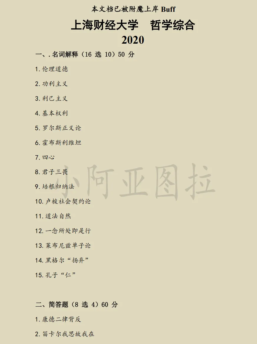 各高校哲学考研真题都有