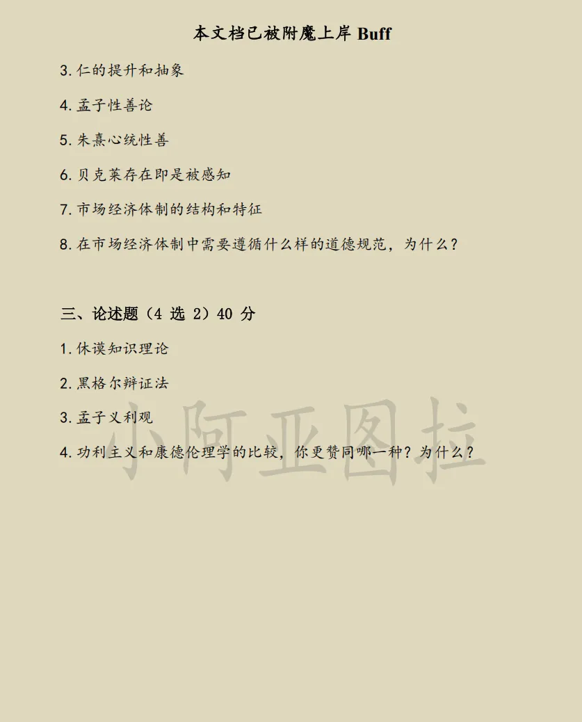 附2007马哲复试真题、2019原802科目真题、三个年份的原伦理学科目真题