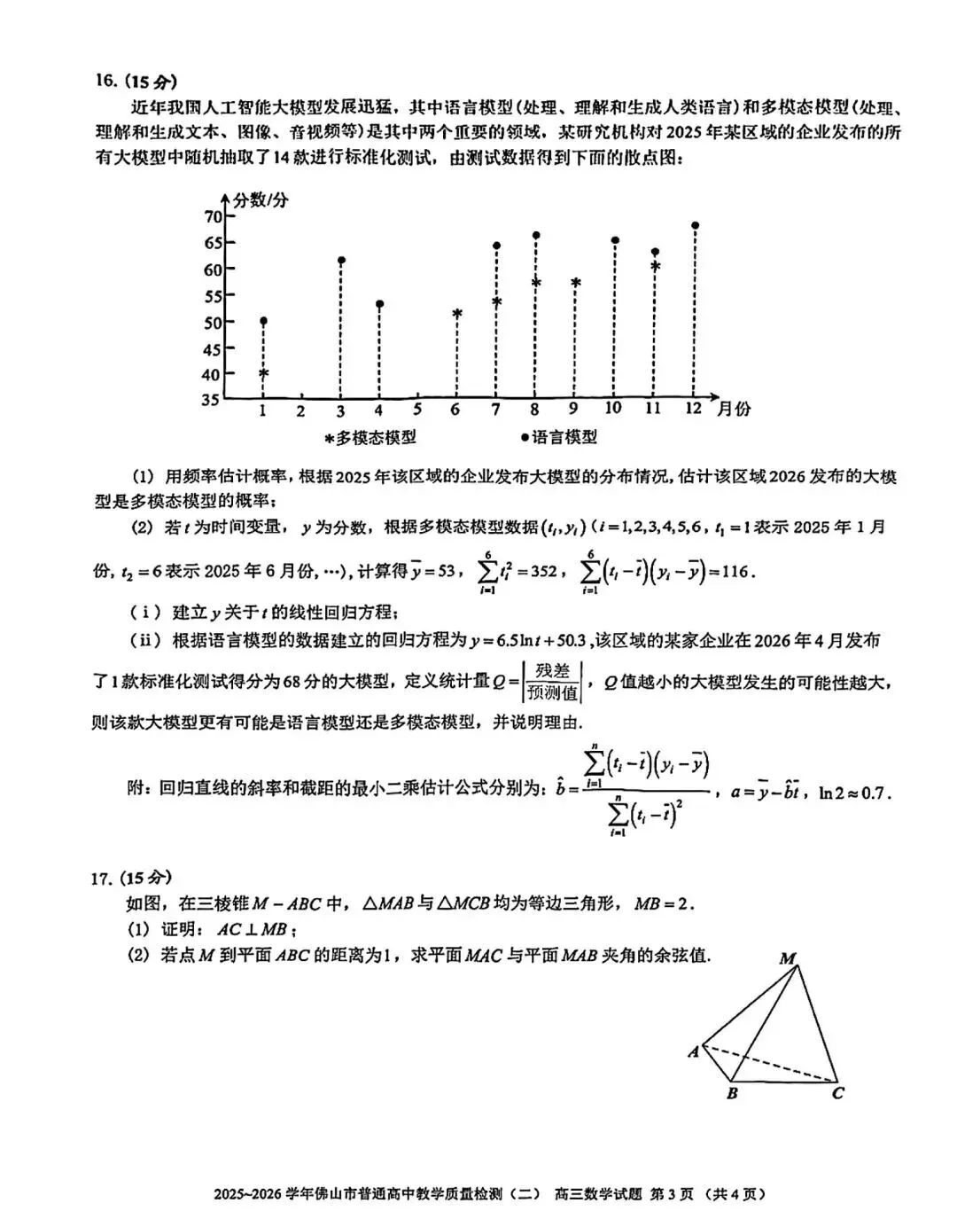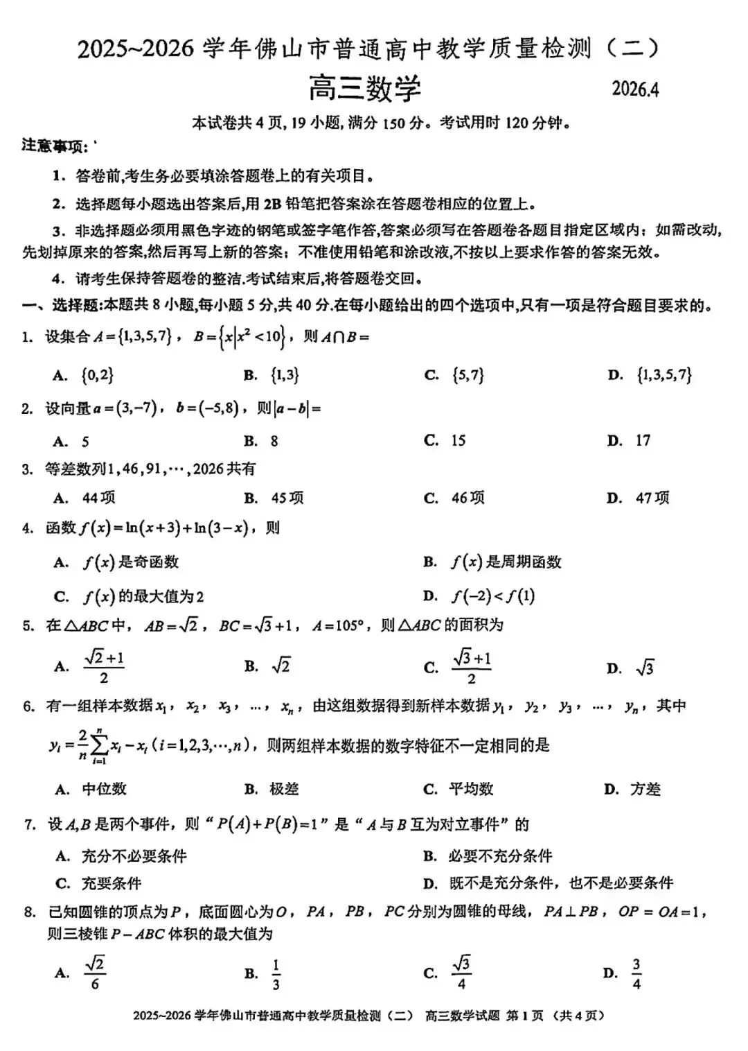 当前位置:首页>考研真题>2026年佛山市高三二模数学试卷和参考答案