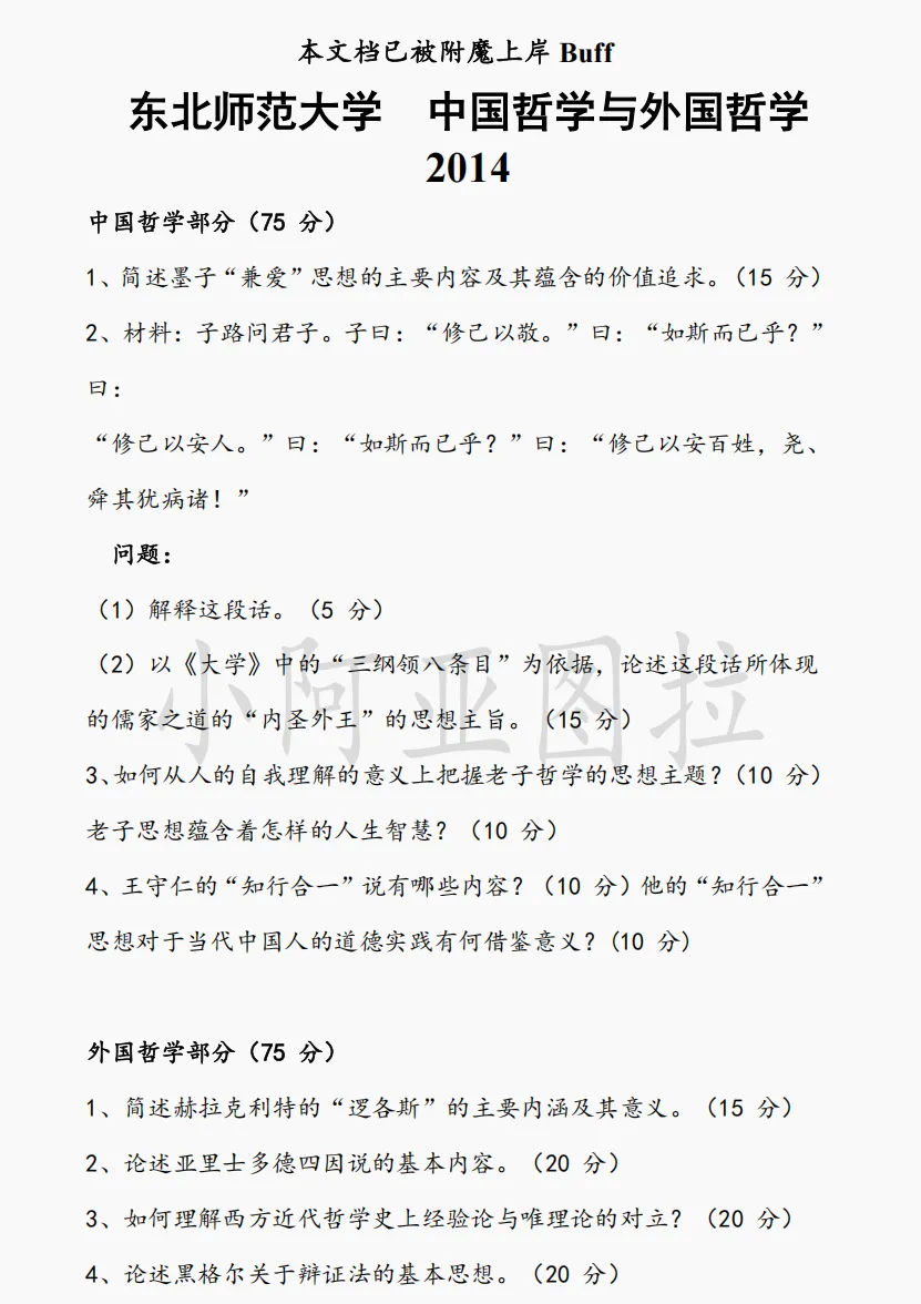 东北师范大学哲学考研历年真题:2014-2026
