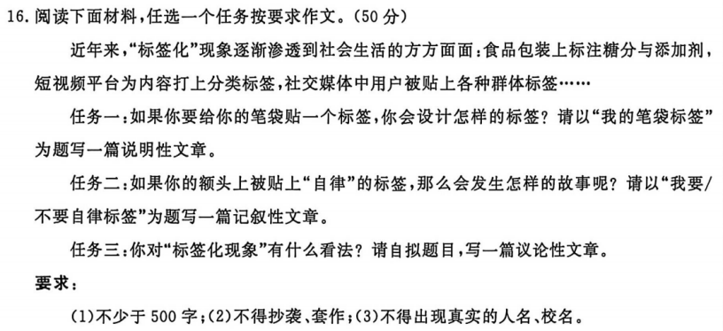 议论文:考察批判性思维。需论述标签化的利与弊。难,适合逻辑思维强、阅读面广的学霸。