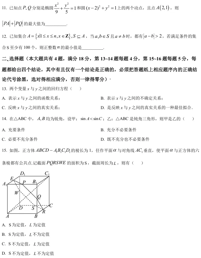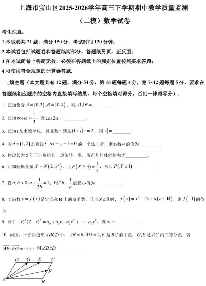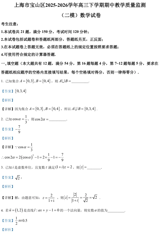 【高三二模】(可下载)上海市崇明区2026届高三下学期第二次模拟考试数学试卷(点击“阅读原文”获取)