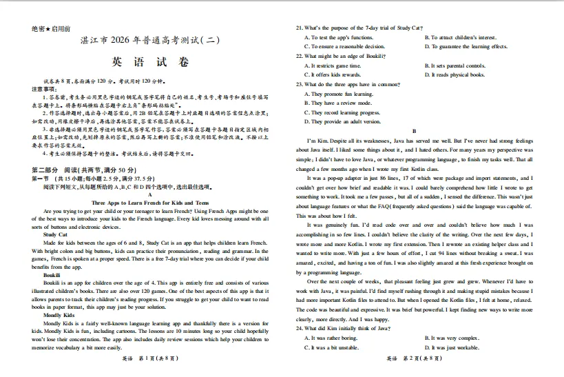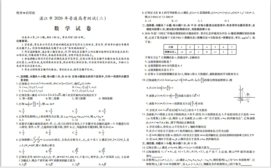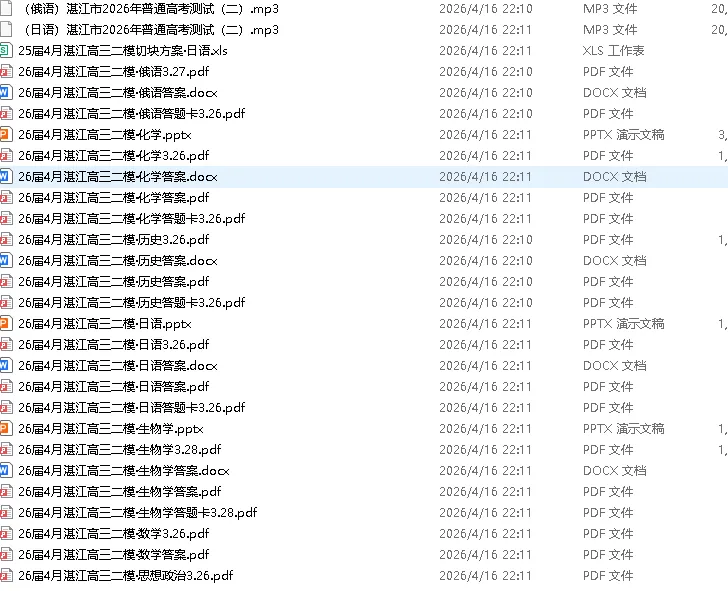 「广东省湛江市2026届高三4月二模全科试卷+答案+细目表+分析课件(完整合集)链接:https://pan.quark.cn/s/e3578a1d42ed