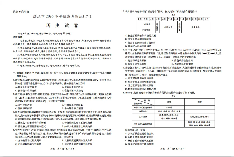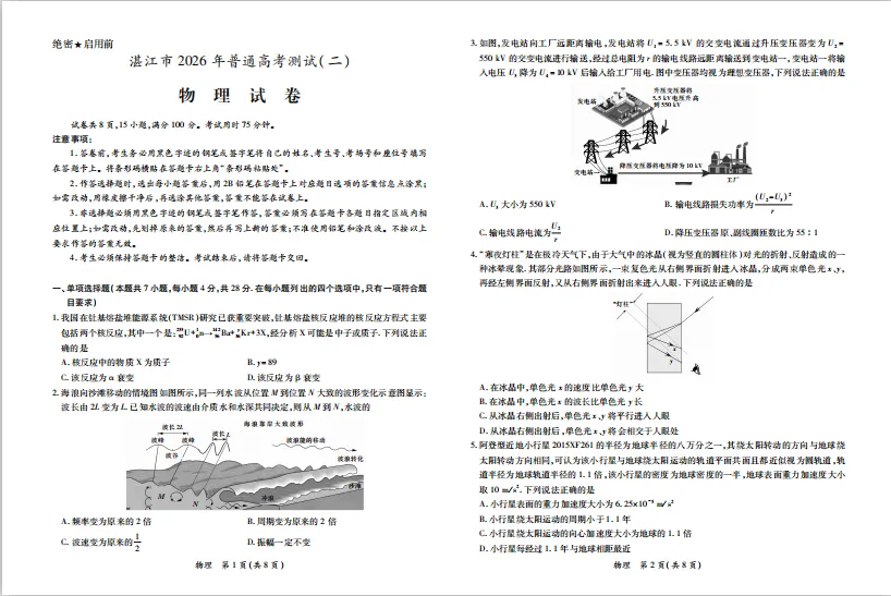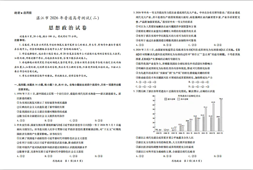 【湛江二模】2026届高三4月二模全科试卷+答案+细目表+试卷分析课件(完整合集)