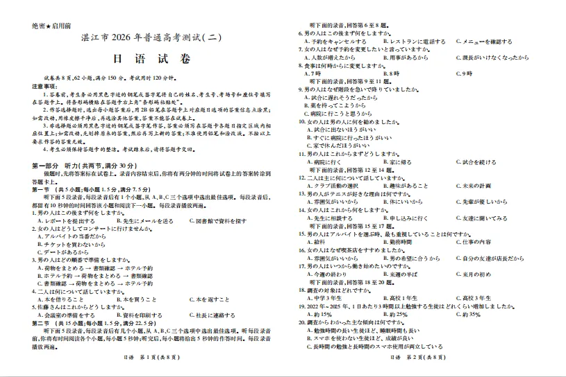 ✅ 日语:试卷+听力原文+听力音频+答案+书面表达范文(贴合高考日语题型,听力素材贴近日常生活场景)