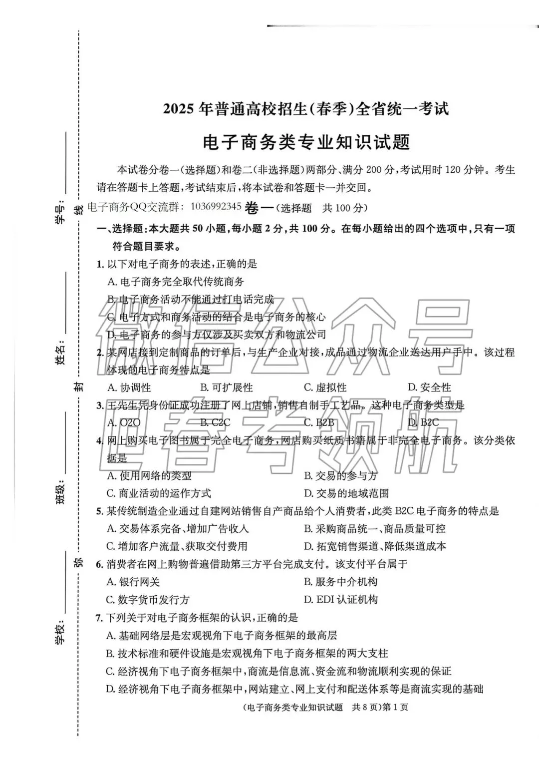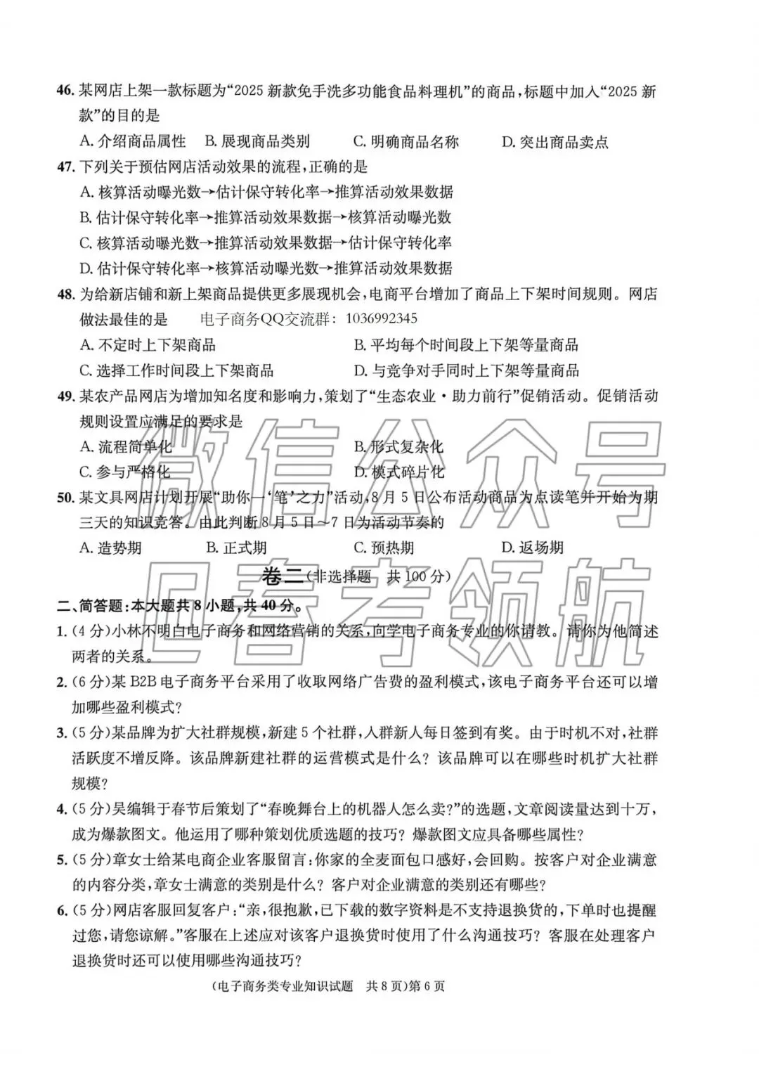 【最新】25年春考电子商务考试真题(含答案)