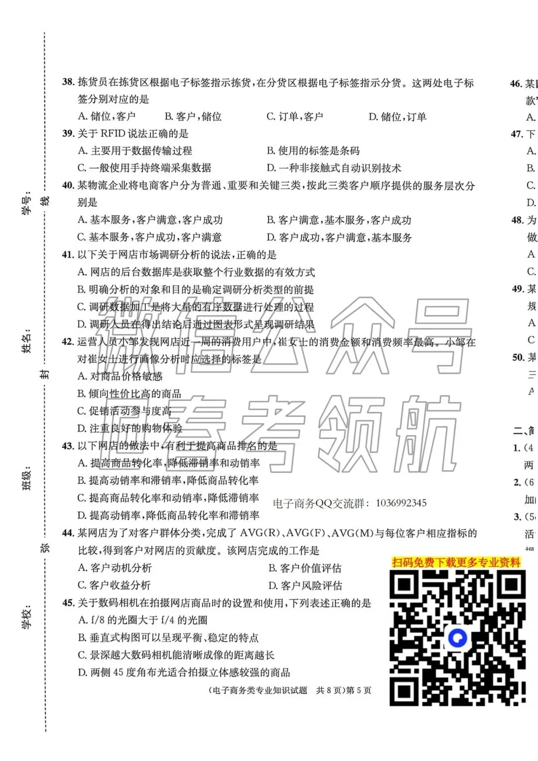 更多春考试题及真题,扫码下载👇