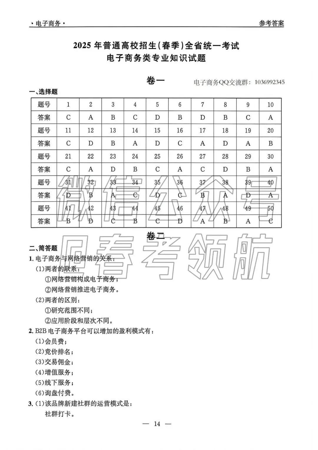 因政策限制,后续发布的春考真题隐藏少量内容,春考30个大类专业试题持续发布,持续关注春考领航公众号即可。