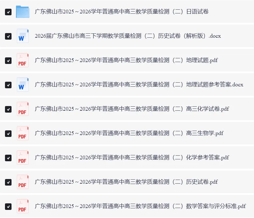 全科可打印!2026佛山二模试题+答案电子版下载!