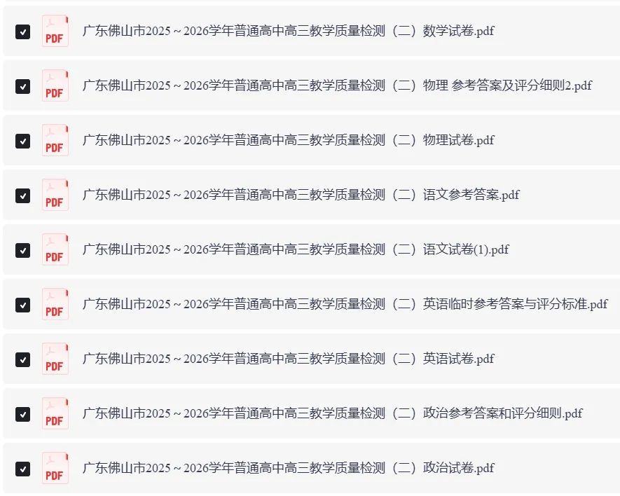 >全科可打印!2026佛山二模试题+答案电子版下载!