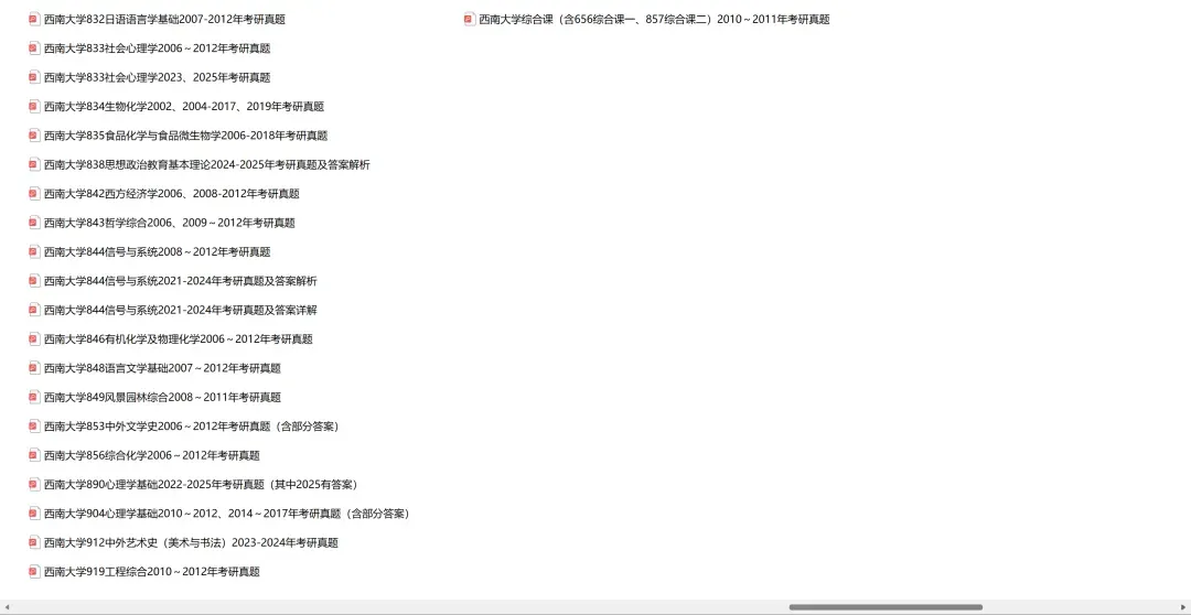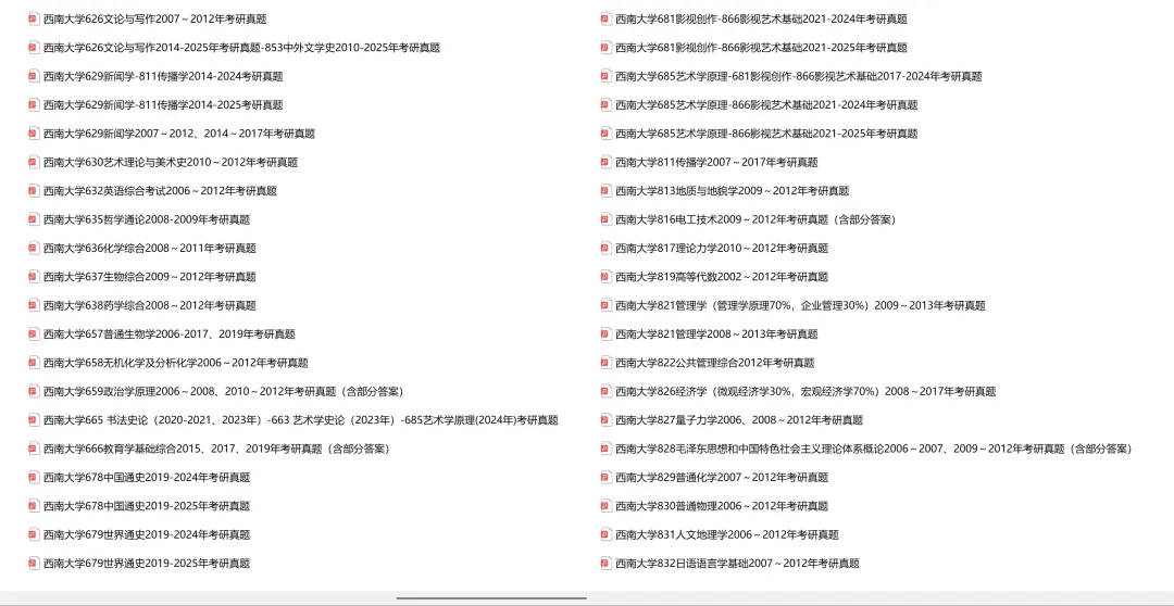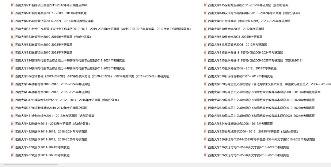 西南大学615数学分析-819高等代数2009-2024年考研真题