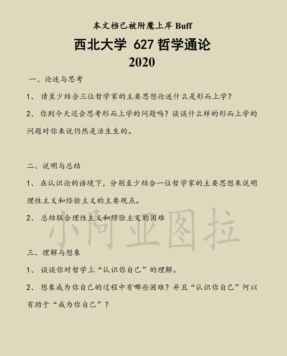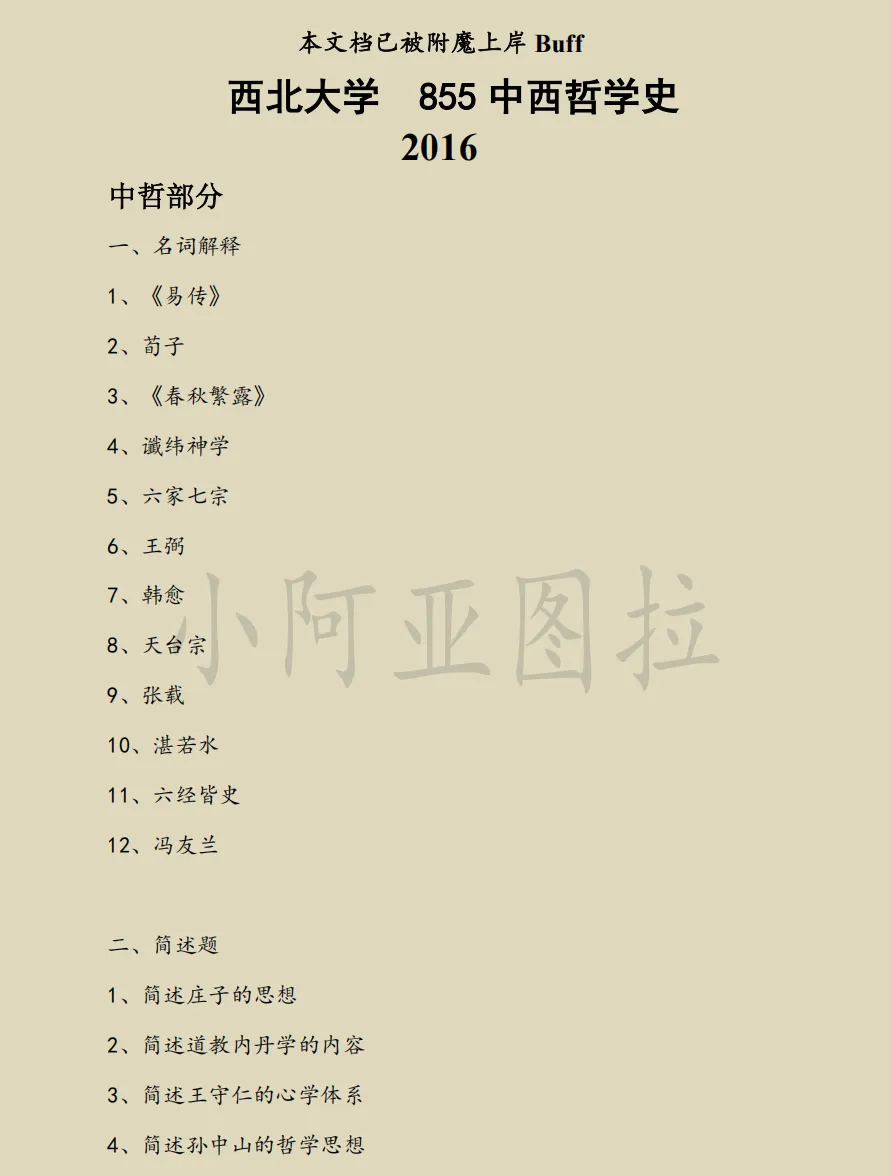 西北大学哲学考研真题:2004-2026