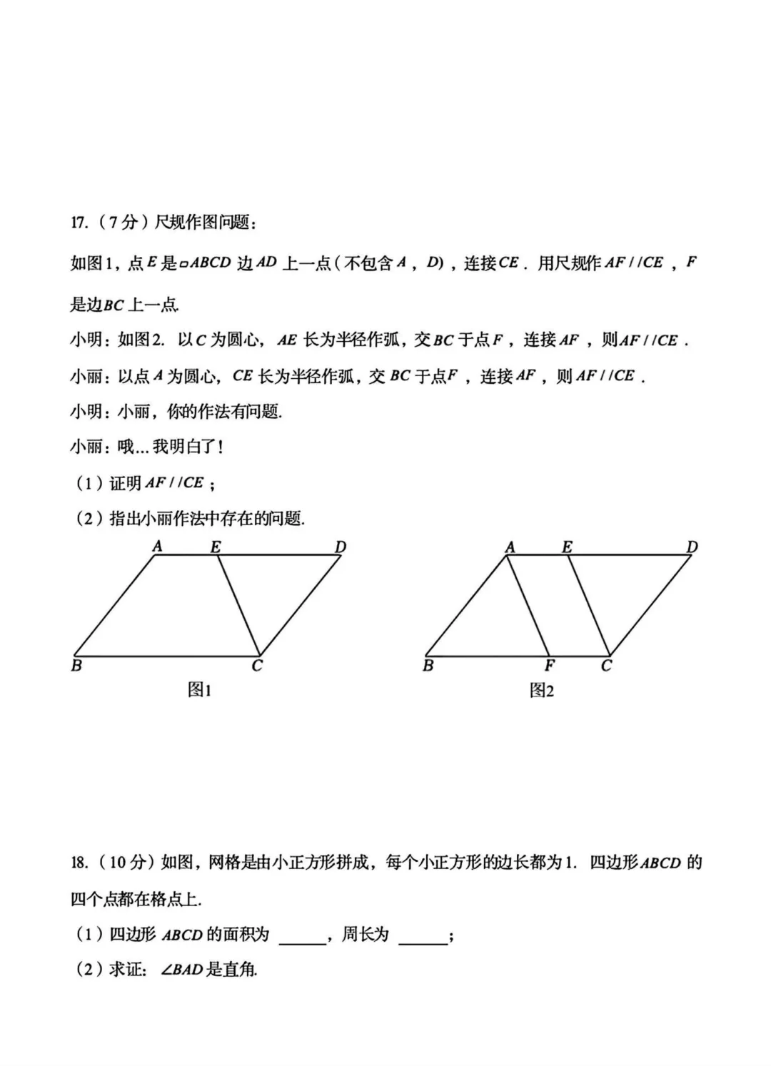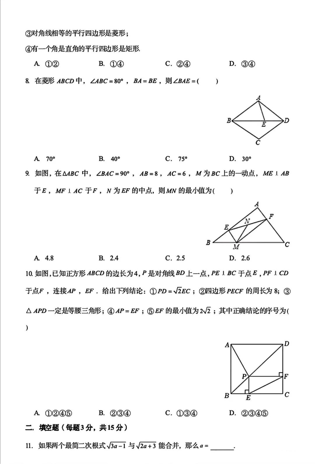 十中24-25学年八下期中数学试卷