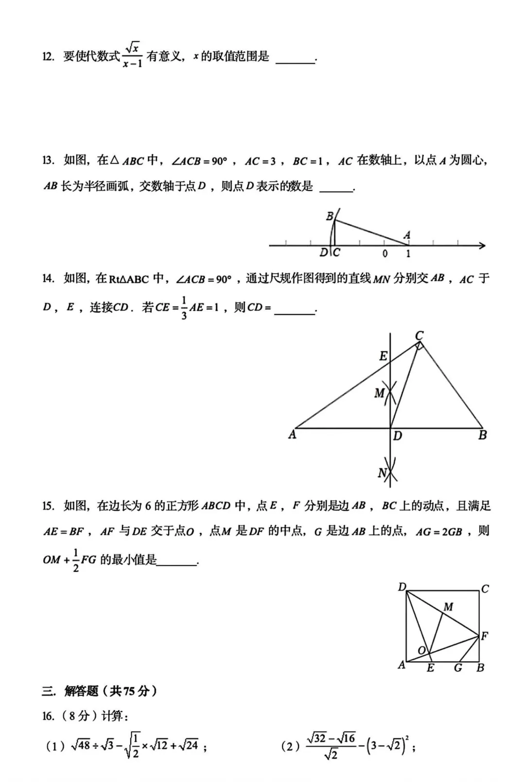 2026徐州铜山一模语文数学试卷(徐州县区一模真题)