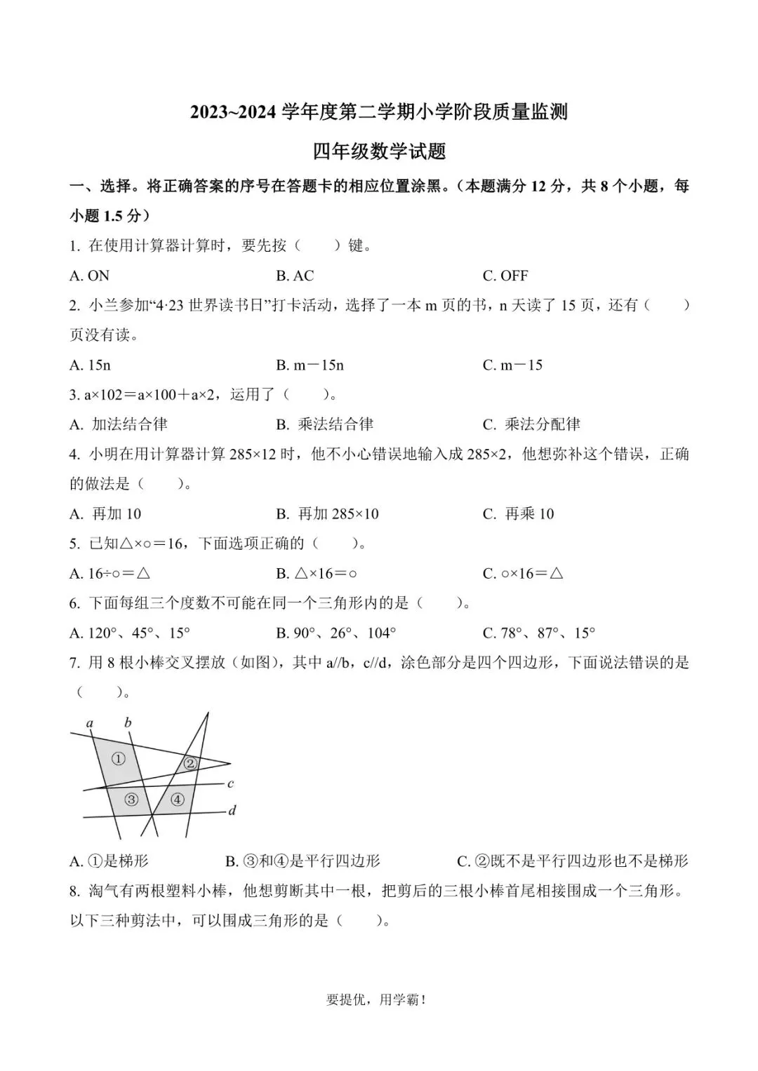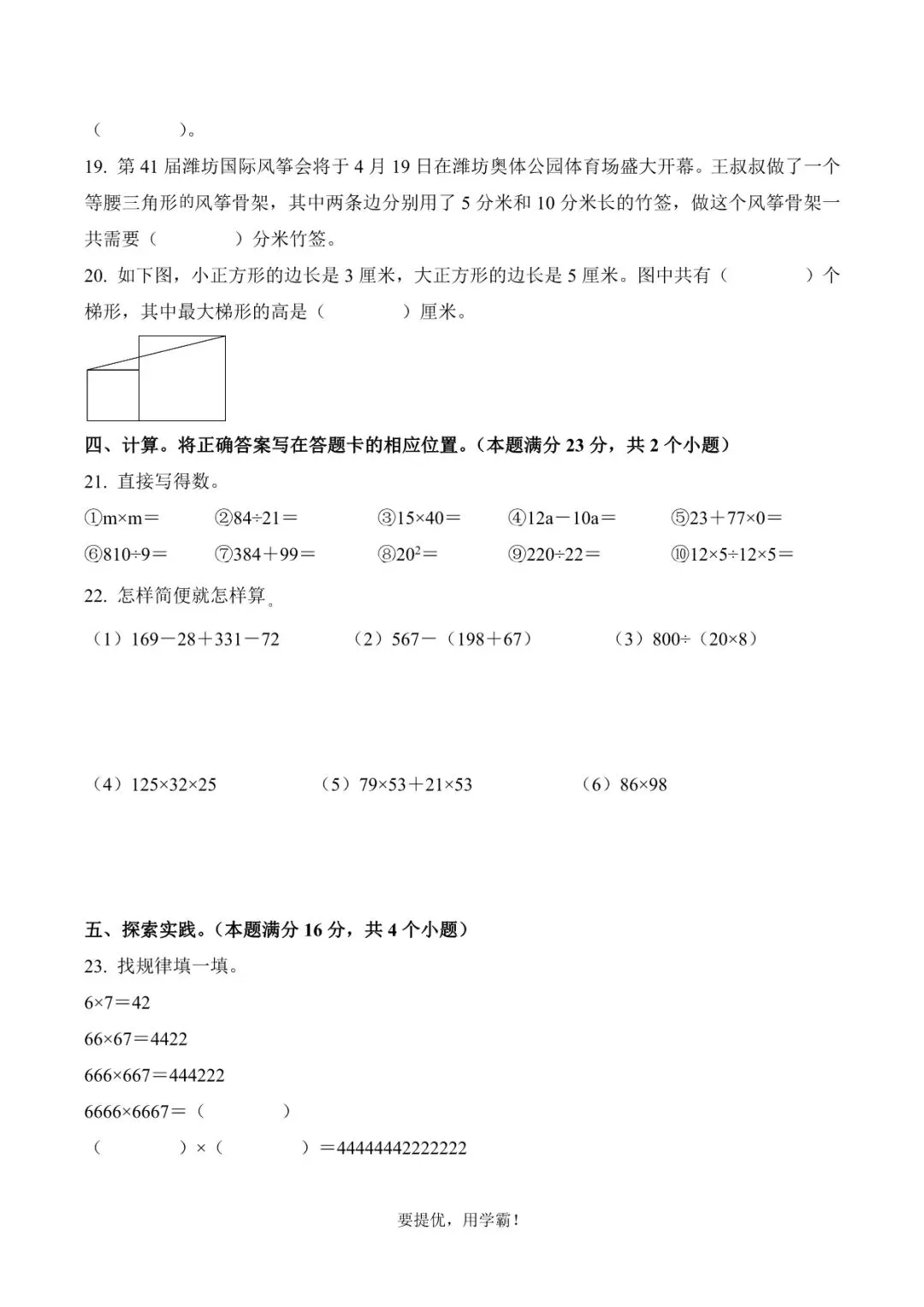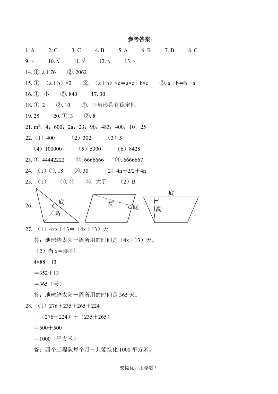 【期中真题】青岛市城阳区四年级下册期中考试数学试卷