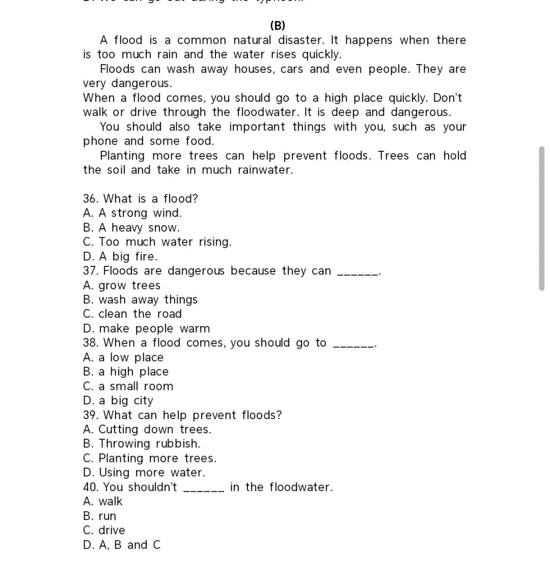 15. We should learn ______ to keep safe when a natural disaster happens.