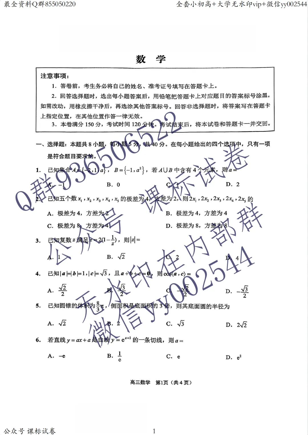 数学知识清单+备考指南+试卷+解析!南通徐州江苏基地大联考南通2.5模高三联考!