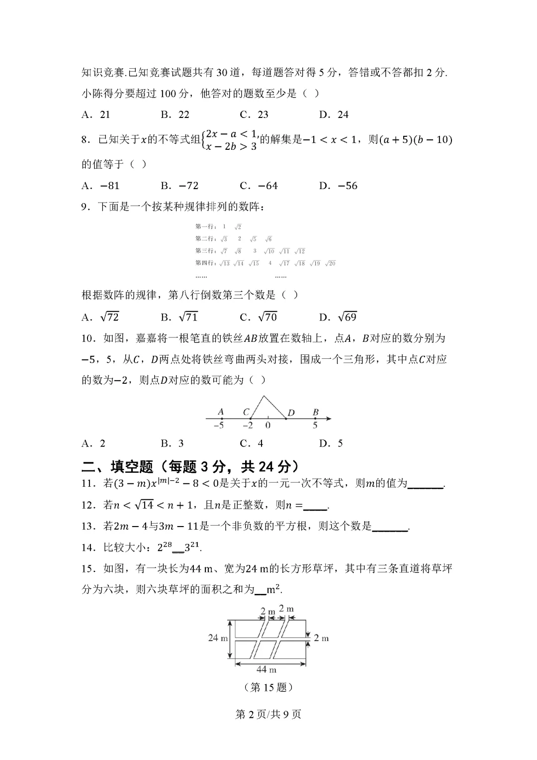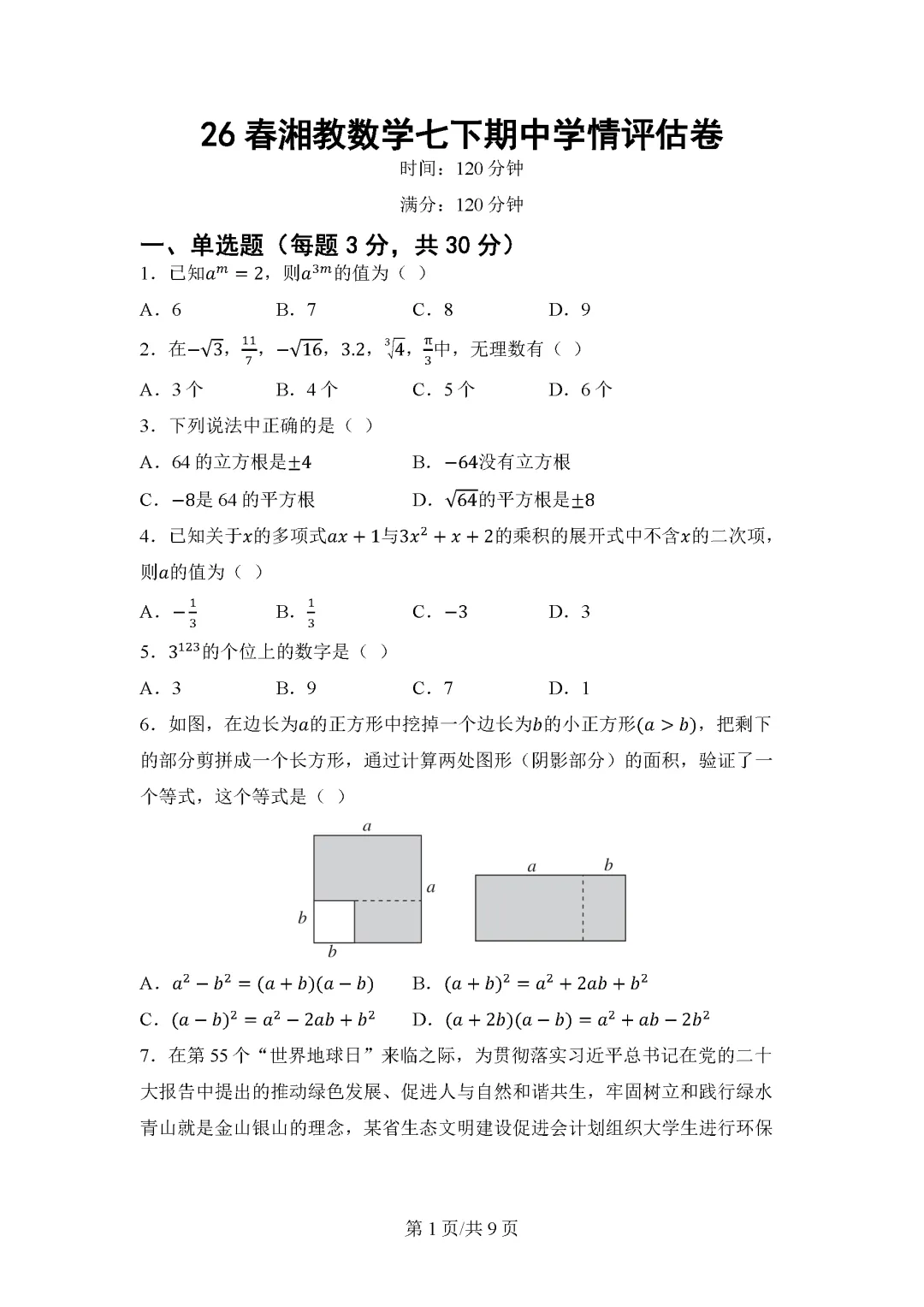 当前位置:首页>考研真题>26春湘教版数学七年级下册期中试卷(有答案)丨可下载打印