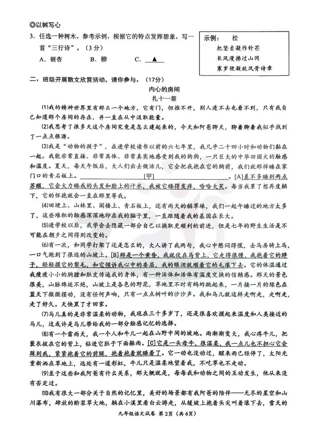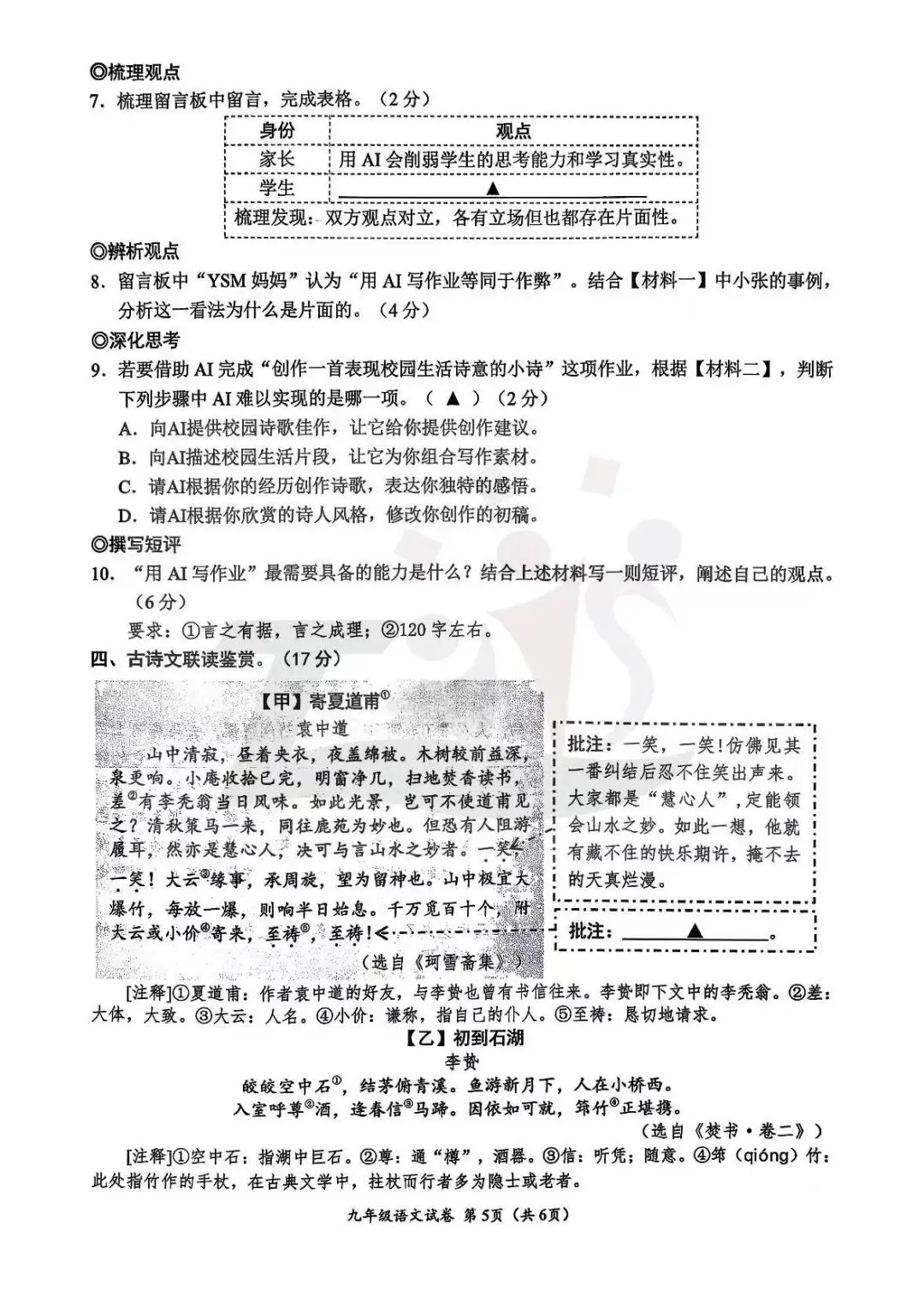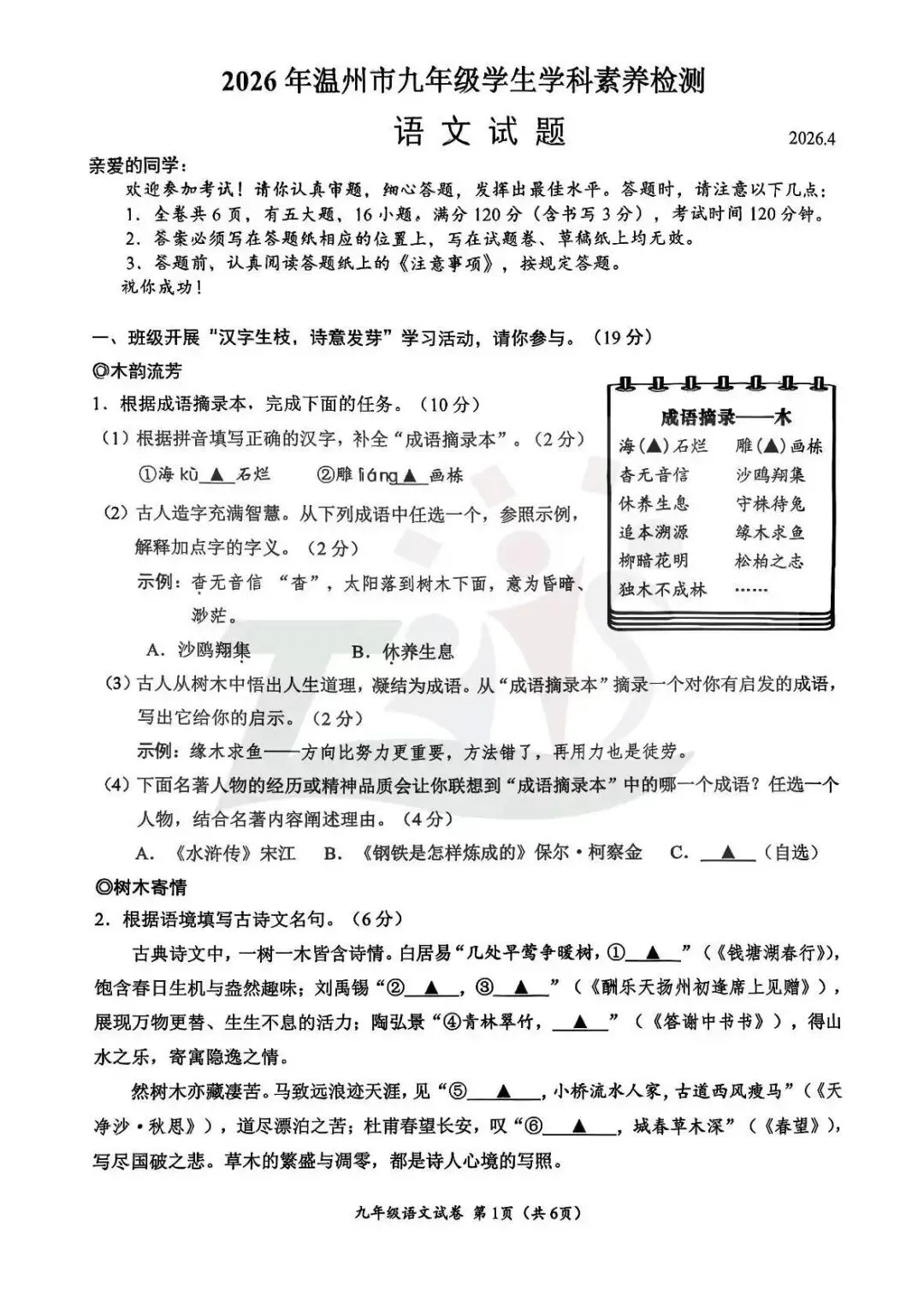 2026年4月厦门双十中学初三联考试卷+答案,免费领!中考冲刺必看