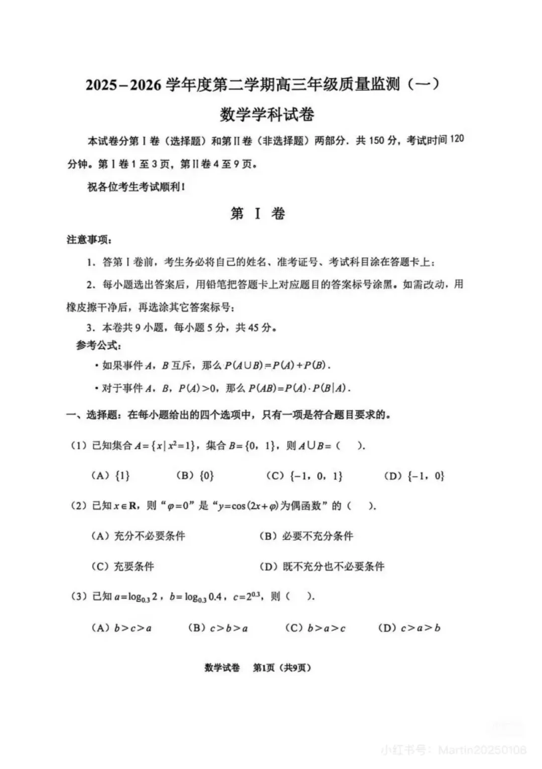 南开区2026届高三数学一模试卷附答案