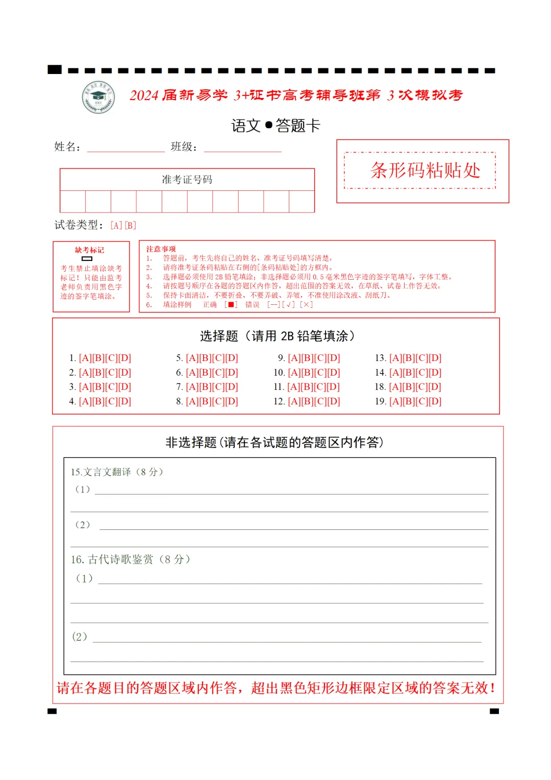 注:此资料为新易学24届第三次模拟考试卷,由新易学出品。为保证做题效果,请同学们做完题再对答案。答案查看方式见下文本次推送旨在分享。欢迎大家学习交流,但禁止任何机构、社群、个体以任何去水印方式盗窃分享,违者将追究相应责任!