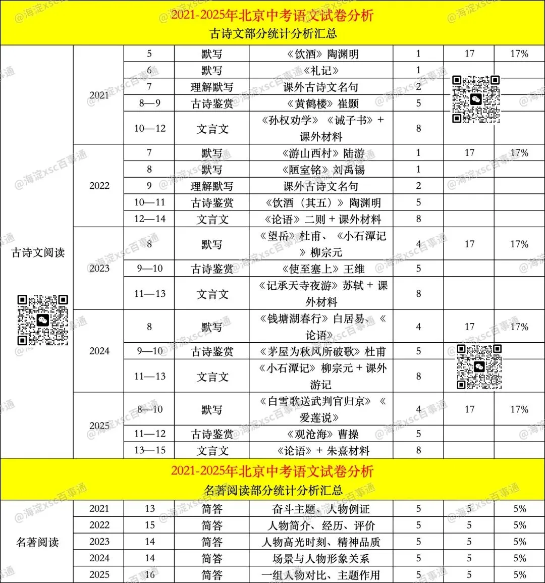 阅读(古诗文、名著、现代文),古诗默写4分,共43—45分