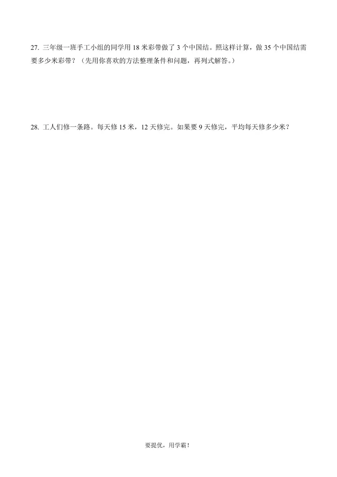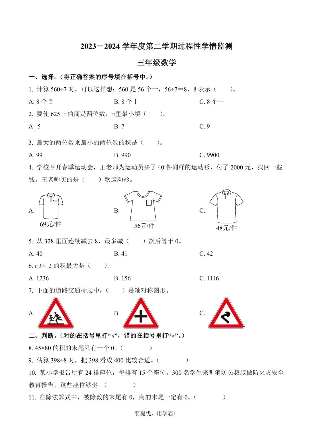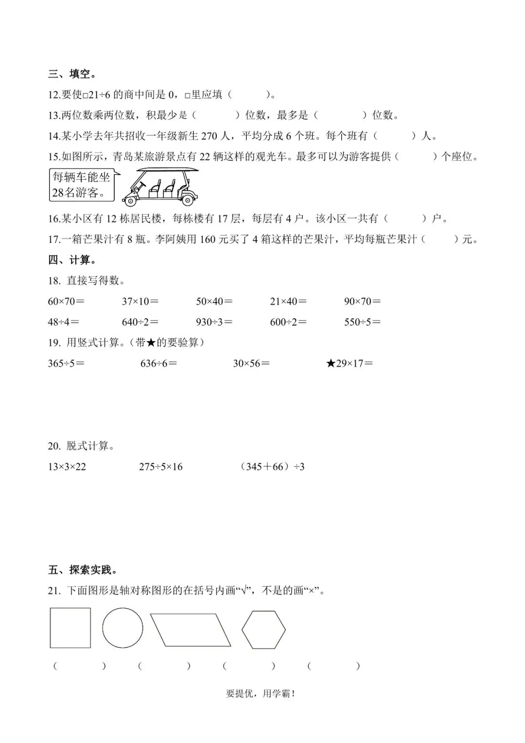 【期中真题】青岛市黄岛区三年级下册期中考试数学试卷