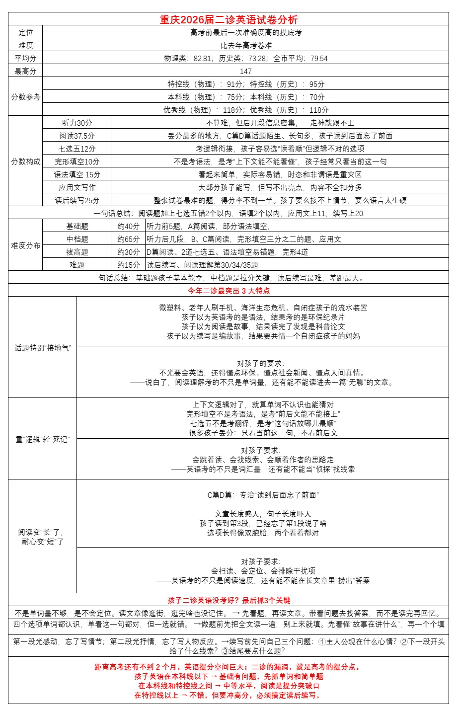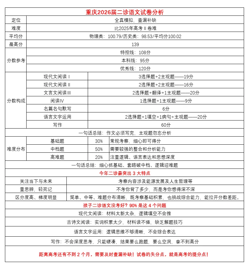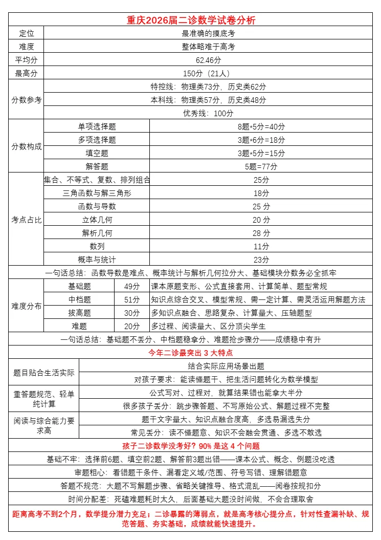 2026年重庆康德二诊刚刚落下帷幕,分数线一出来,几家欢喜几家愁。但分数不是终点,考后的分析复盘才是逆袭的起点!