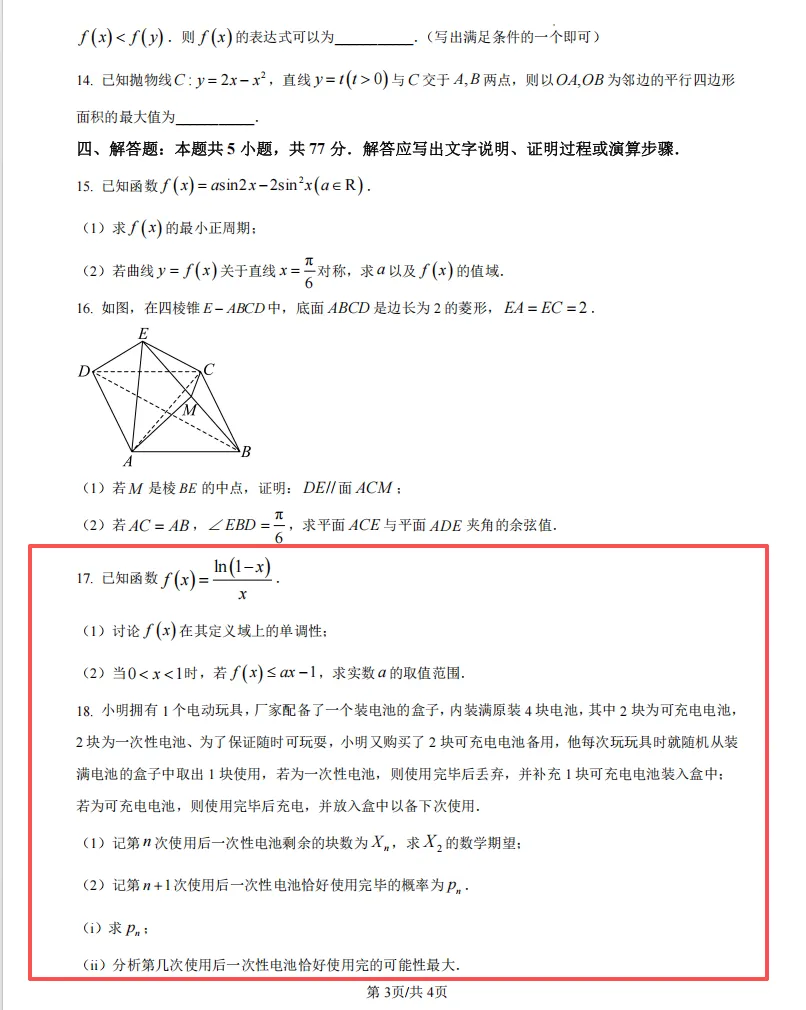 重基础强综合,压轴题区分度拉满。试卷紧扣新高考 “3+1+2” 模式,重点考查函数导数、解析几何、立体几何、数列、概率统计5 大核心模块,基础题占比 60%,中档题重综合,压轴题难度贴近高考,侧重思维能力与解题速度。