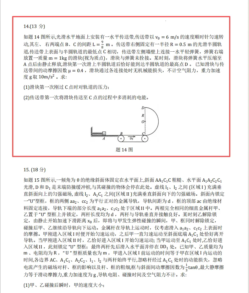 实验创新 + 模型综合,贴合高考命题逻辑。难度适中偏难,紧扣力学、电磁学两大核心,实验题创新设问,计算题侧重多模型综合,融入生活实际场景,考查知识迁移与逻辑推导能力,精准对接高考重难点。