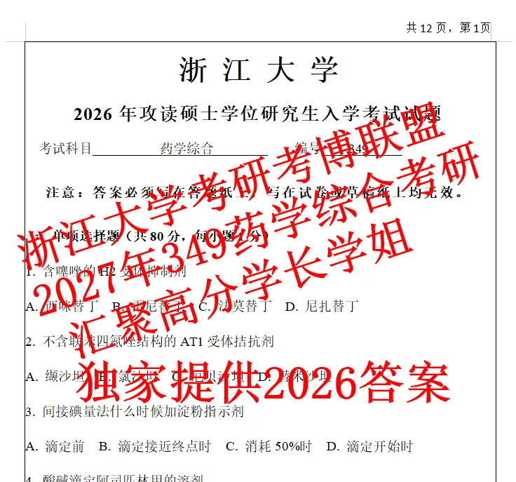 1.最新收集到2026年349药学综合考研真题回忆(收集到单选题70个,多选题20个,问答题每题都在)