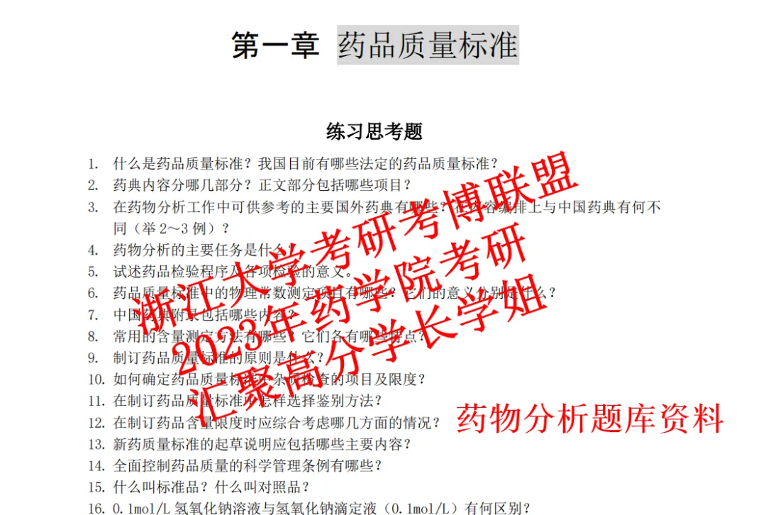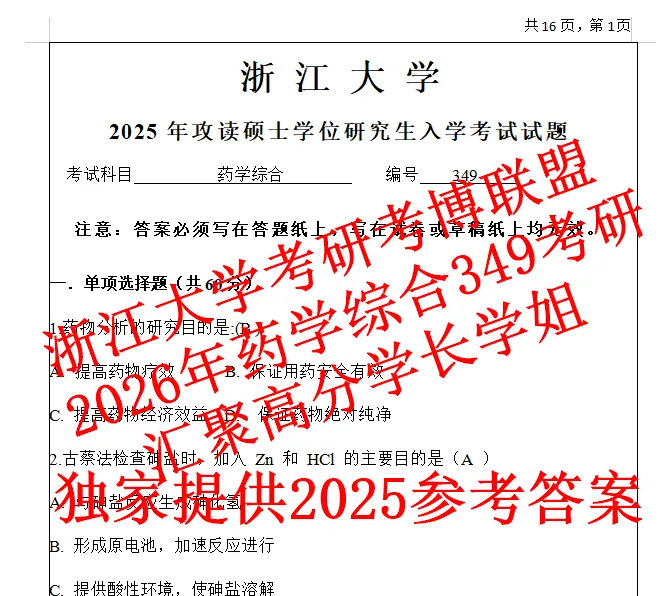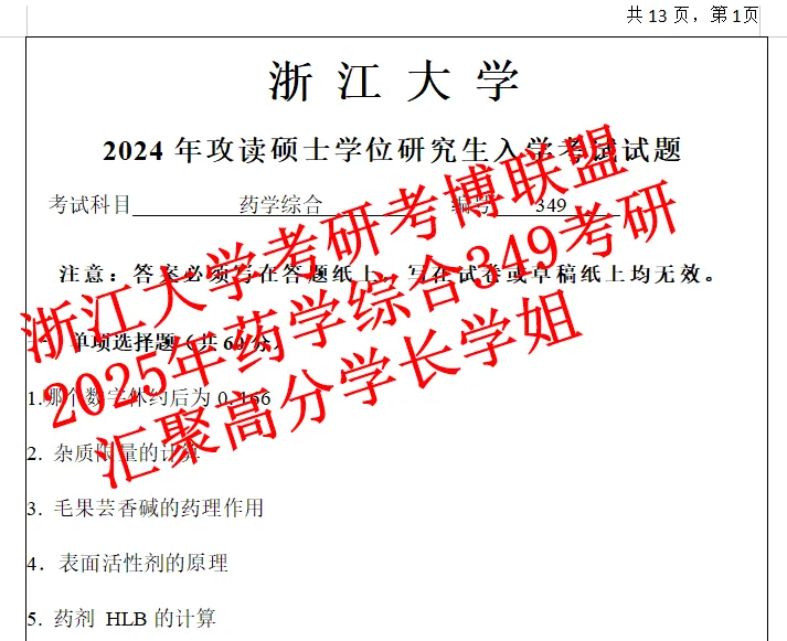 说明:浙江大学考研考博联盟收集了丰富的349药学综合考研往年真题资料,但是因为2023浙大药学院基本上已经明确说明需要考四大药。