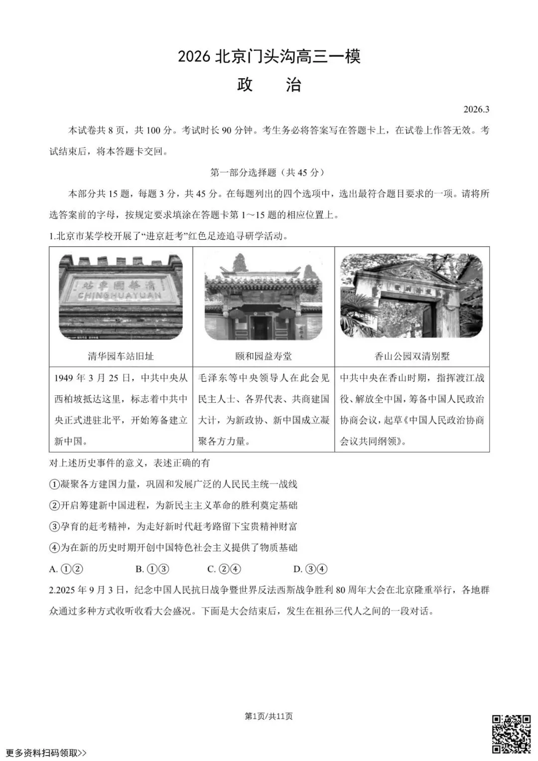 当前位置:首页>考研真题>2026北京门头沟高三一模政治试卷(含答案)