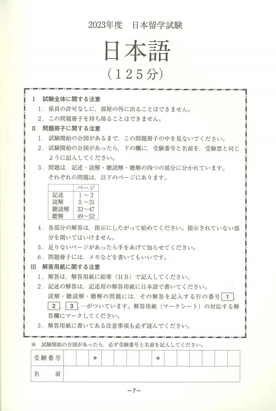EJU真题分享系列|2023年(令和5年)第2回 日语试题