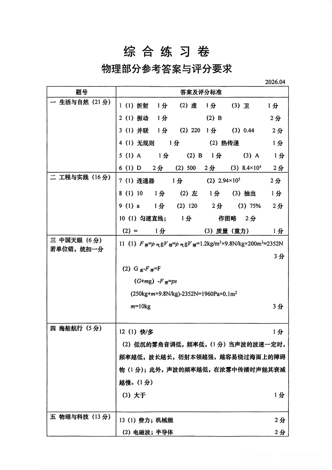 “26年初三物理二模”