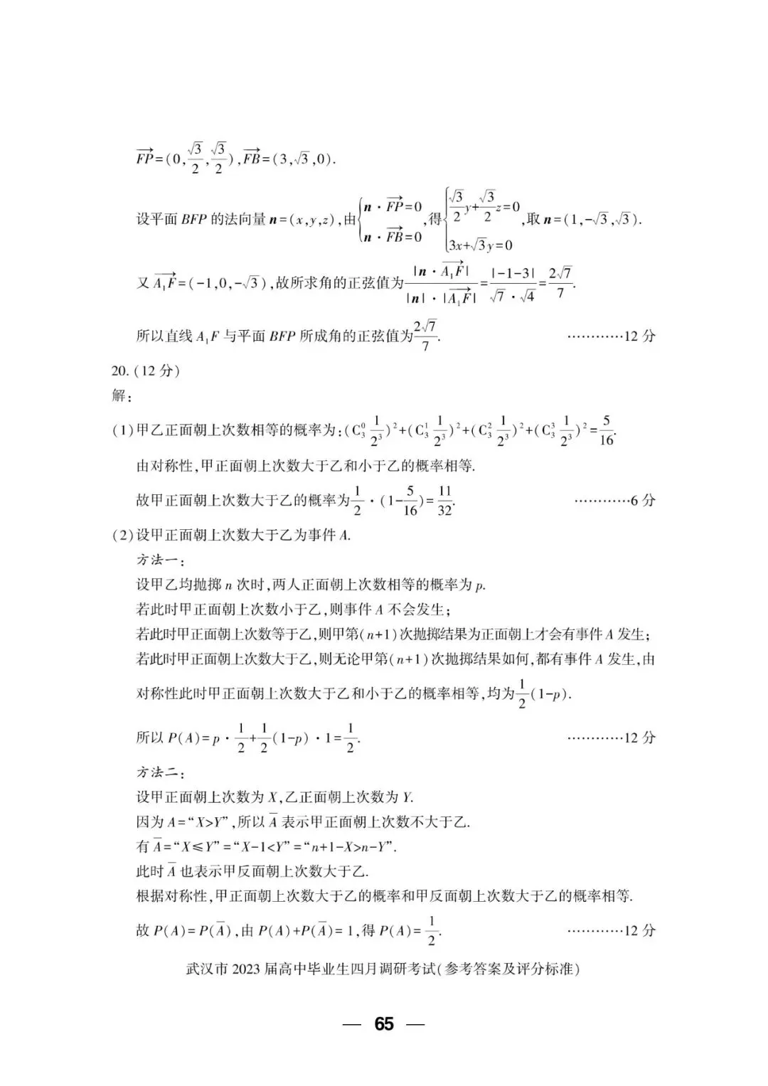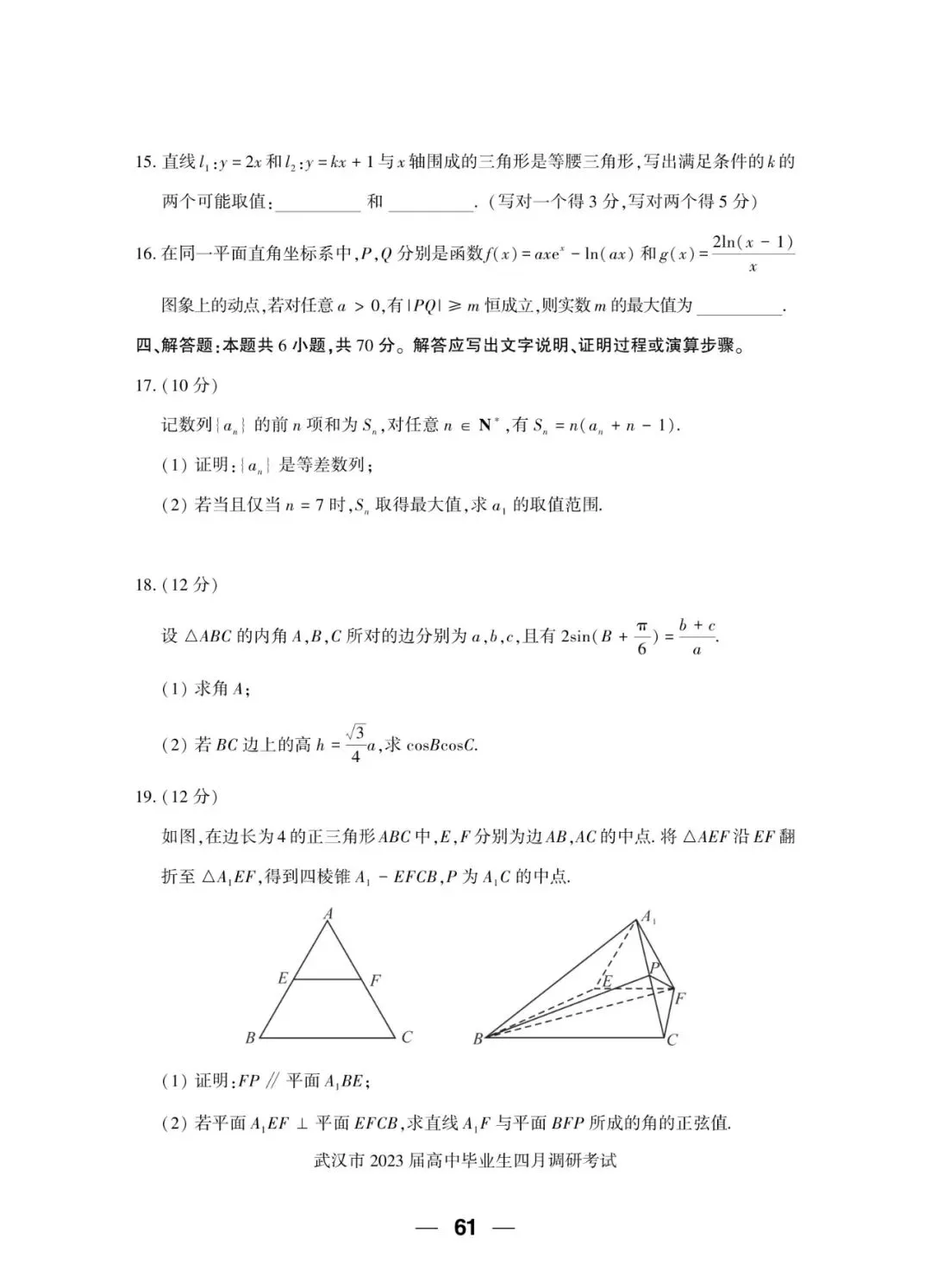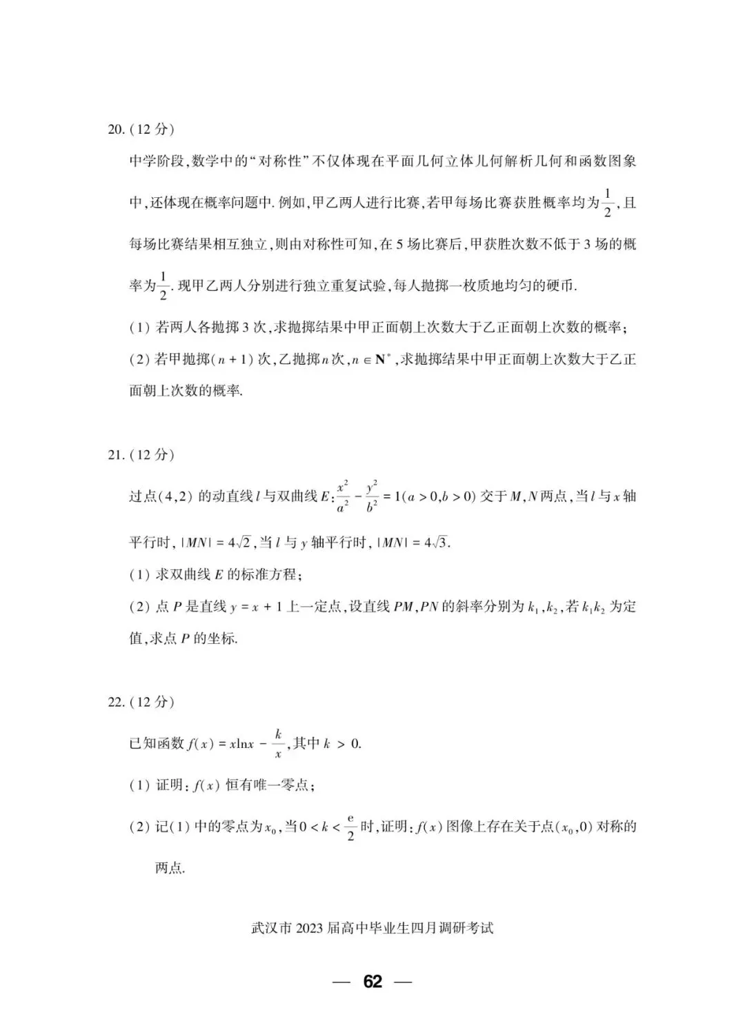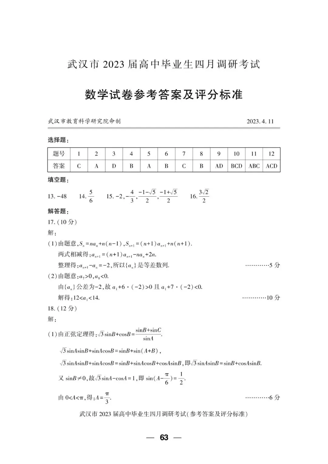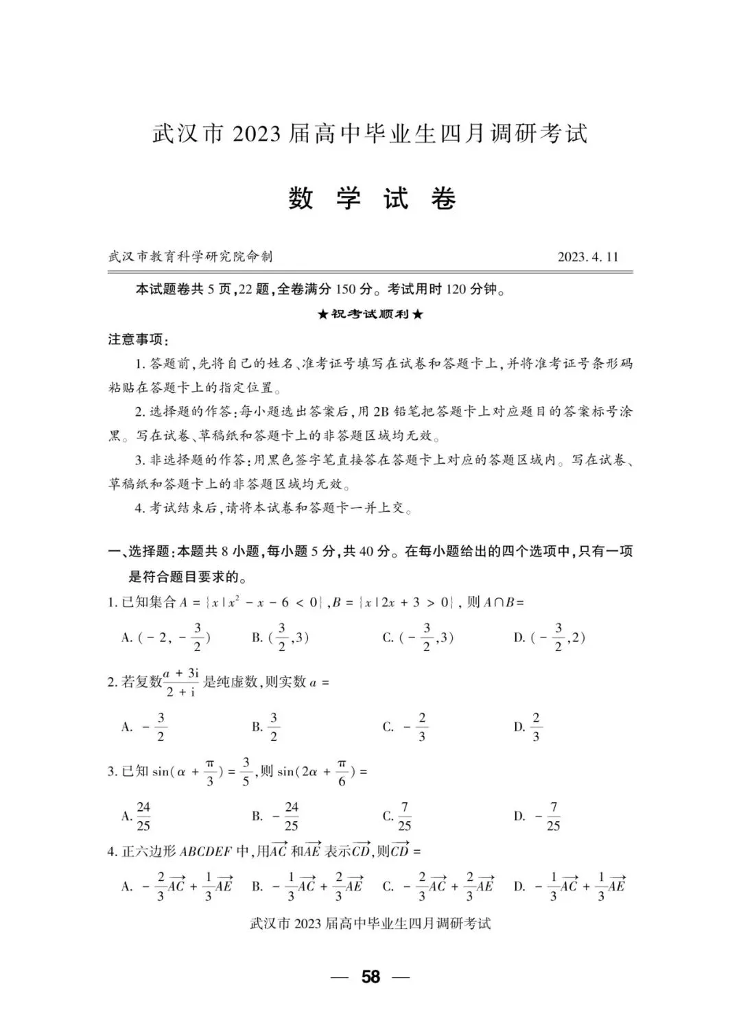 2023届 武汉市四月调研考试 数学试卷+答案解析+备考指南