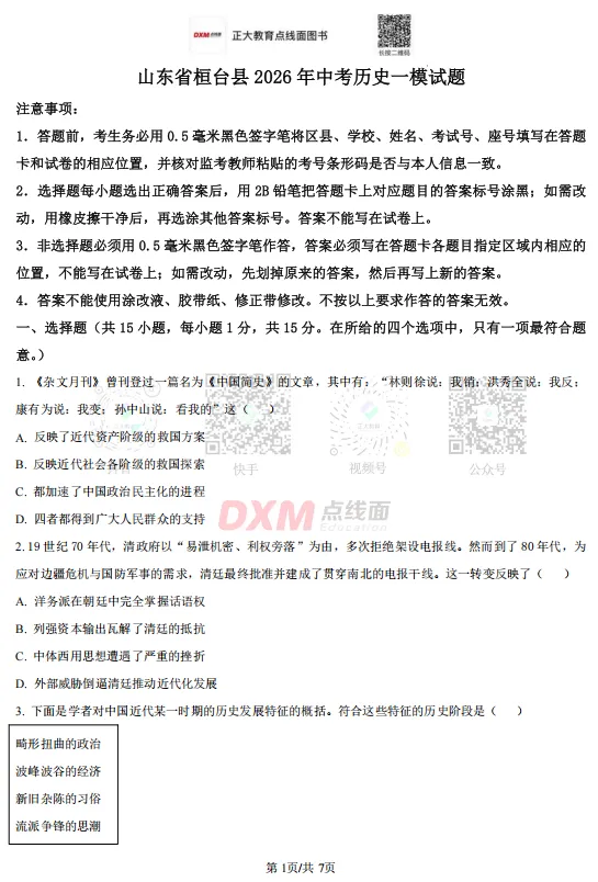 [ 2026山东中考预测卷 ]