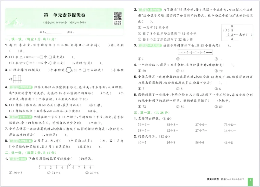 今天给大家分享的是26春新版《拔尖大试卷》1-6年级数学人教版下册,含有答案。如果觉得好,欢迎转发到朋友圈或家长群,让更多有需要的家长看到~