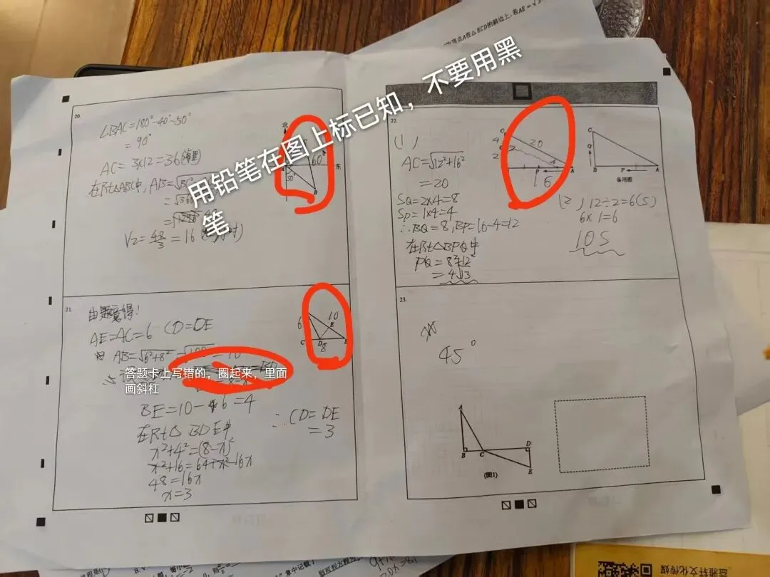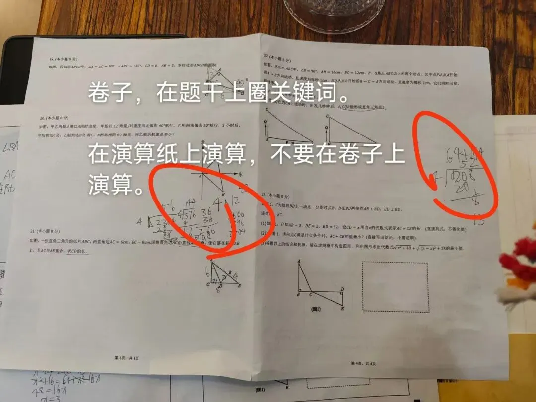 错题类型4:做题习惯有问题。比如读题不认真,有用信息没有圈画。时间分配不合理,大题没有时间做。不用演算纸,在卷子上进行演算,搞得卷子很乱,思路也乱了。几何题没有标记上图的习惯。