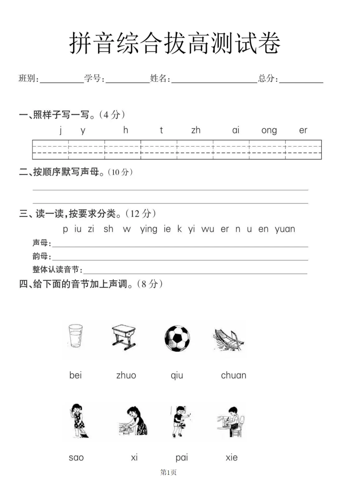 幼小衔接语文 拼音拔高测试卷