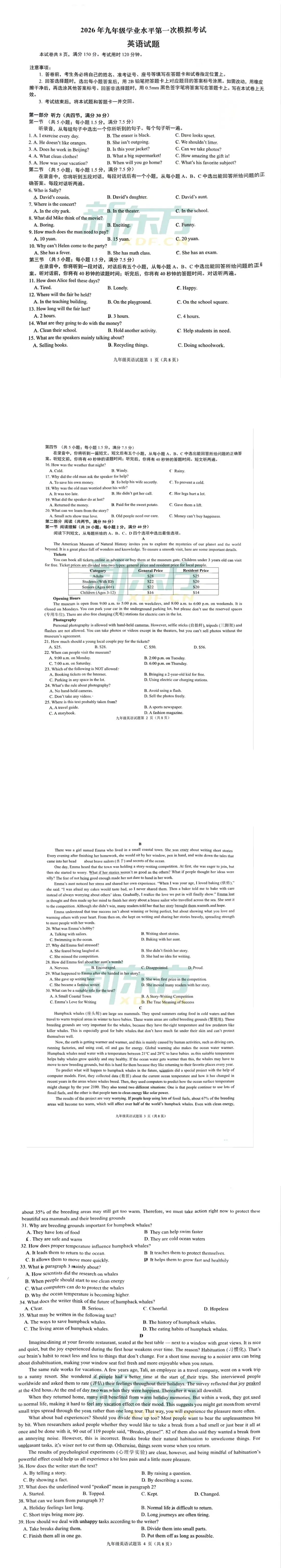 湖南两市初三4月一模试卷分享!衡阳学生可练!