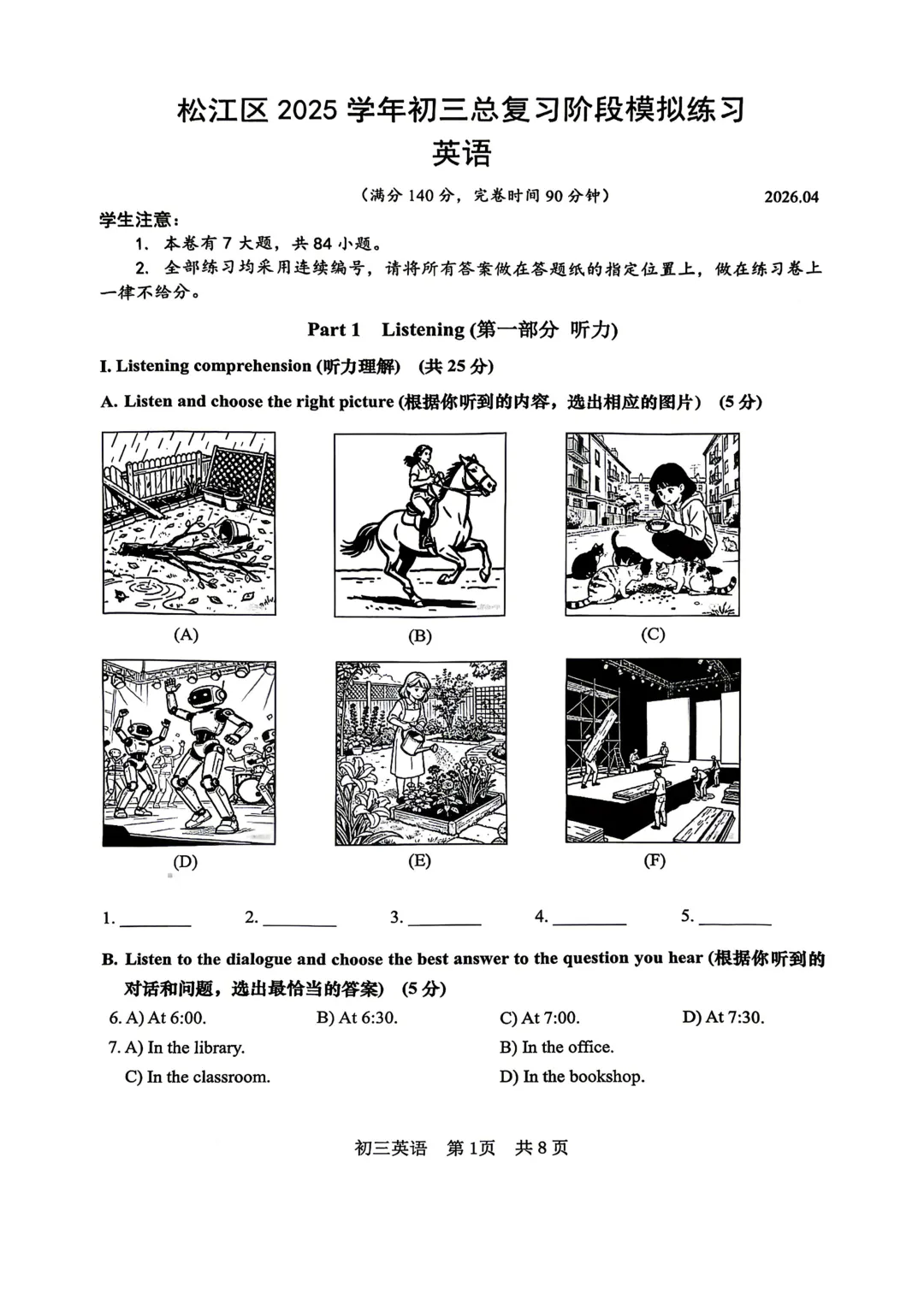 2026年上海市松江区中考英语二模试卷(含听力音频)
