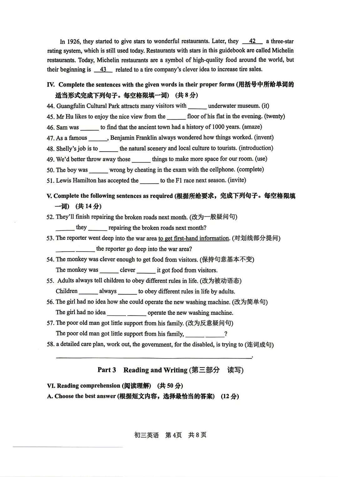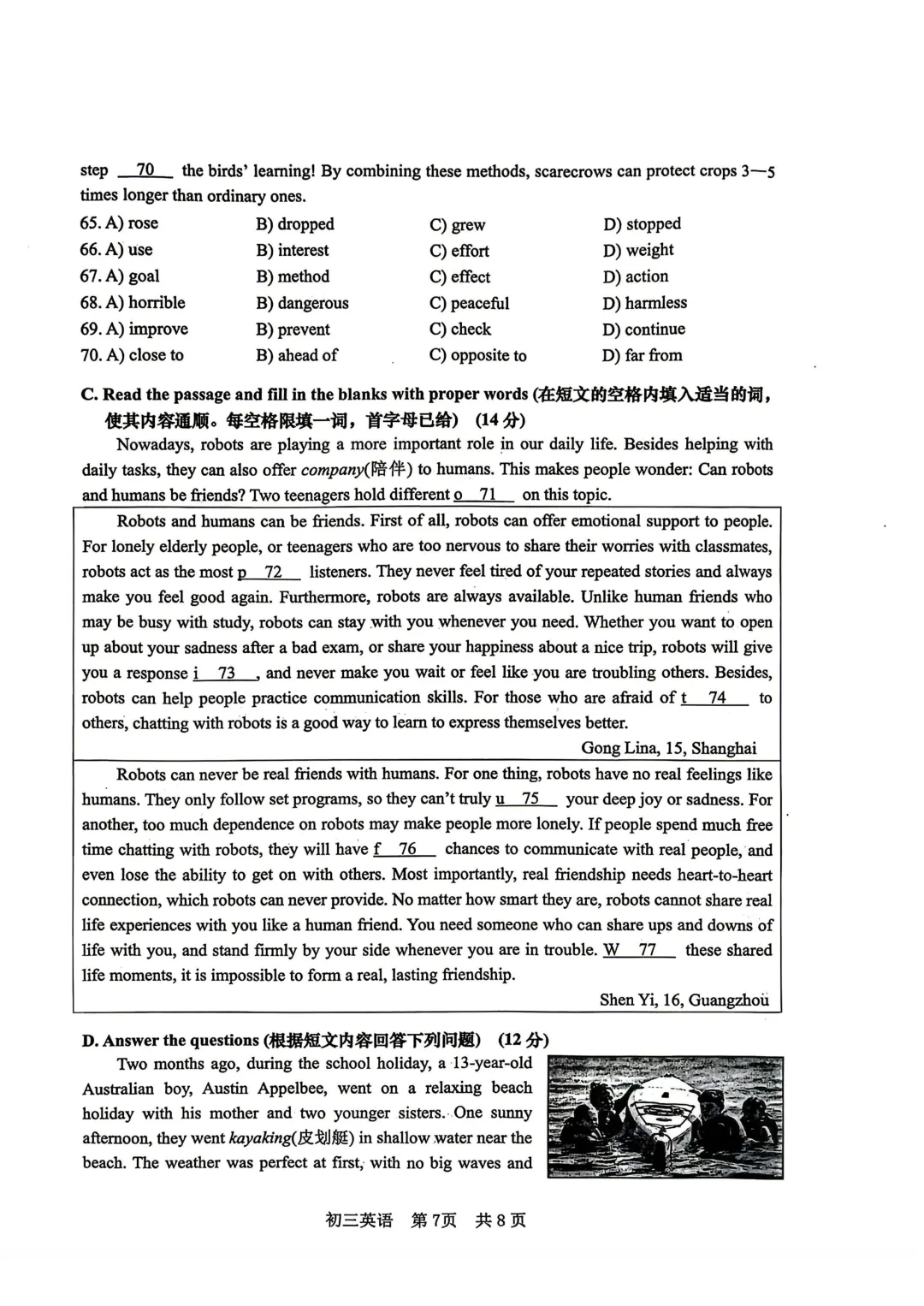 >2026年上海市松江区中考英语二模试卷(含听力音频)
