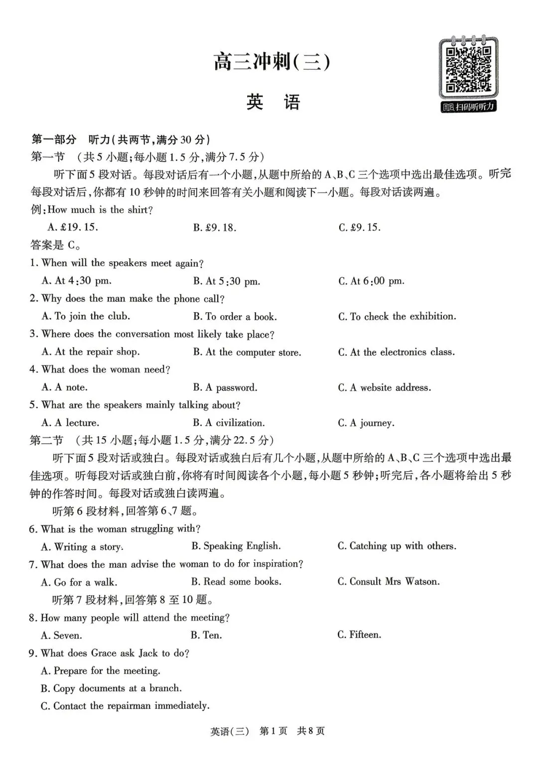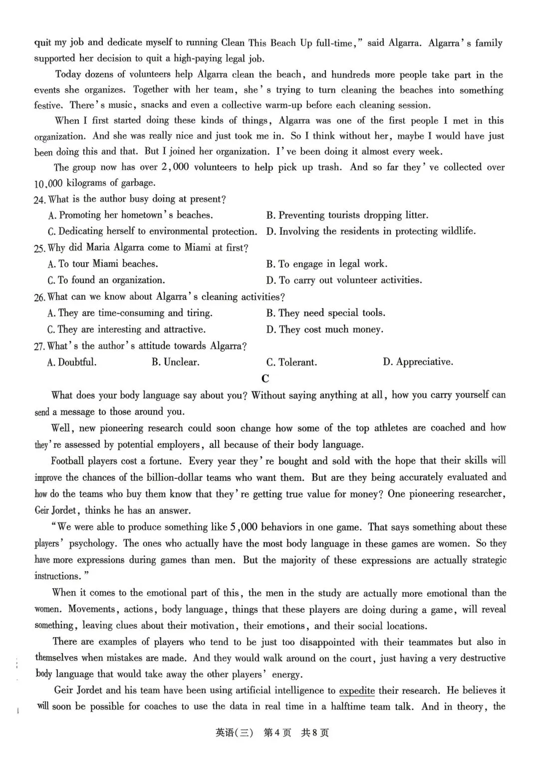 【试卷推荐】2026年4月山东省高三核心素养评估英语试卷及答案详解