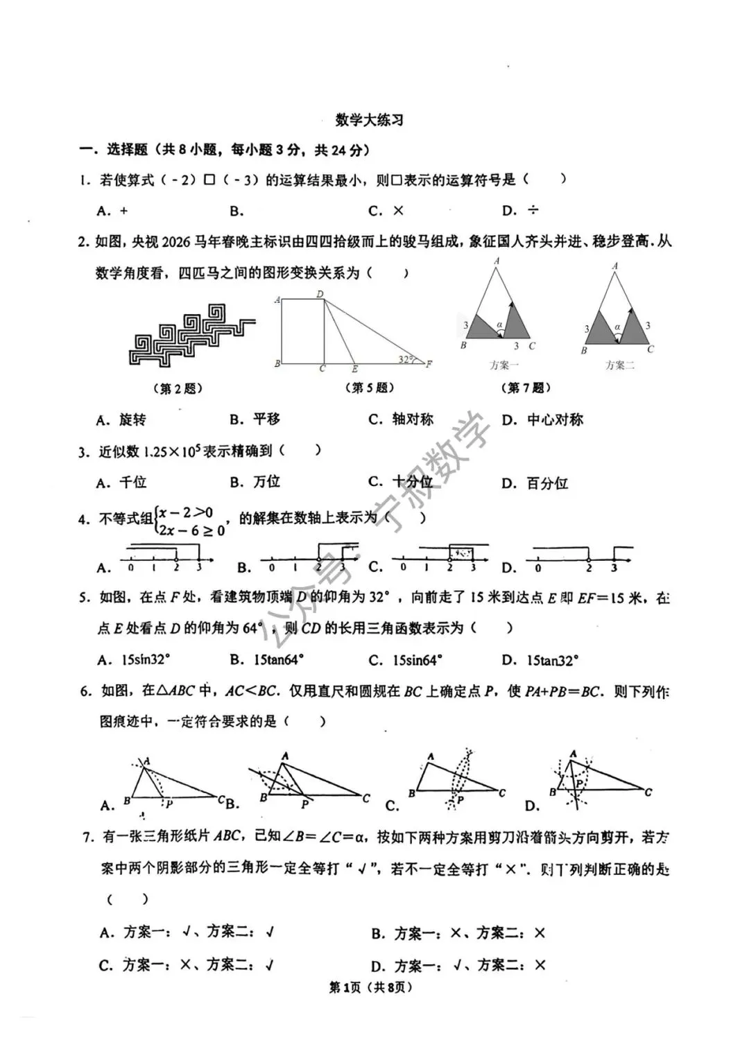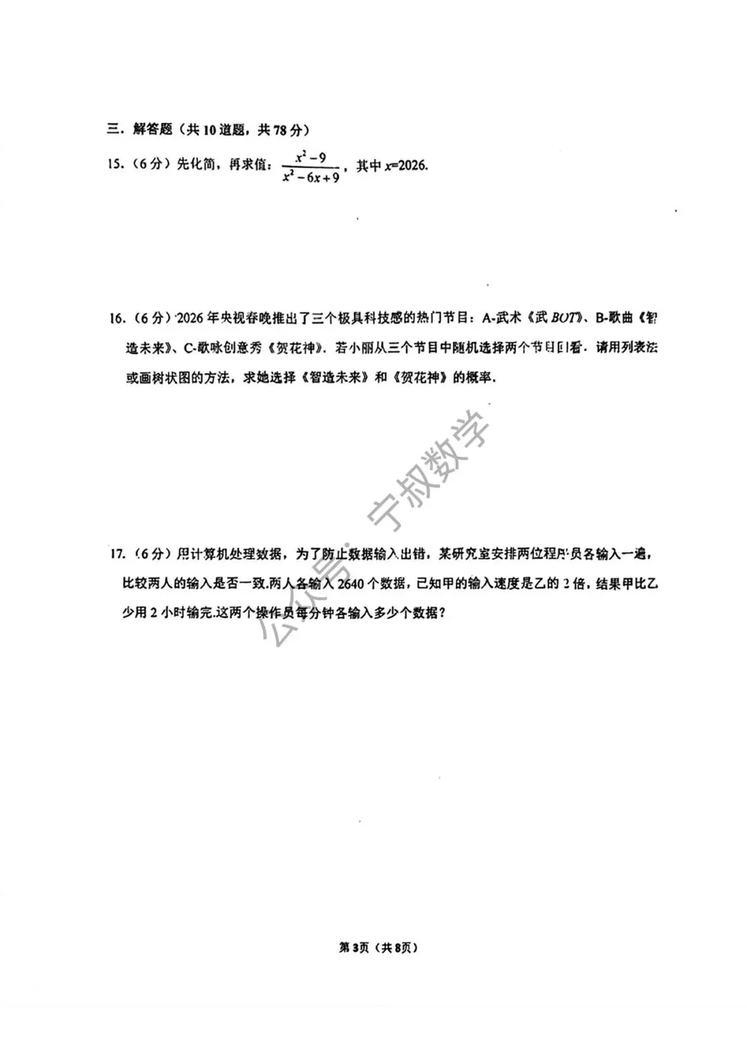 特别说明:本号由数学张老师(笔名宁叔)主理运营,所分享的试卷和资料,只用于帮助老师和学生们的学习使用,仅供参考。试卷资料收集随缘,部分试卷收集时便无答案。如需更全面更系统的长春名校试卷和习题(付费教辅资料),可直接添加张老师微信咨询(17504411775电话同微),整理资料不易,能力有限,非诚勿扰。